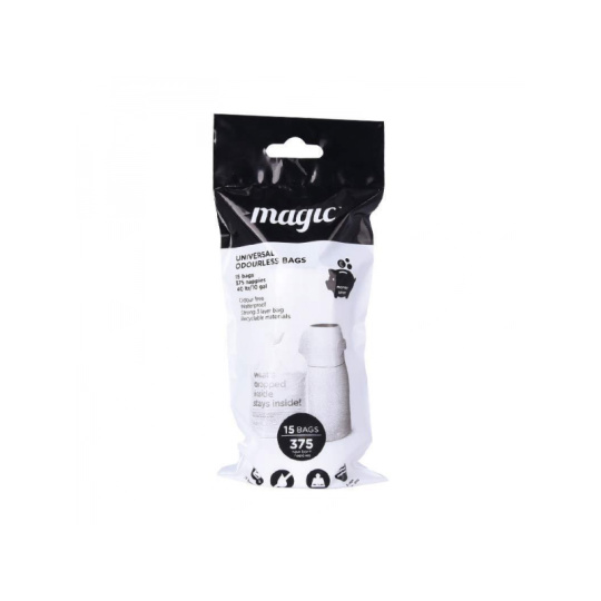 Univerzální sáčky do košů na pleny Magic. 3-vrstvý extra silný materiál brání protékání a chrání před šířením zápachu. Balení obsahuje 15 ks sáčků, vystačí přibližně pro 375 ks plen pro novorozence (počet plen záleží na jejich velikosti). Vyrobeno z recyklovaného materiálu.