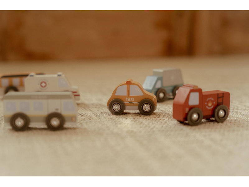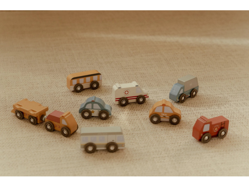 Sada dřevěných autíček