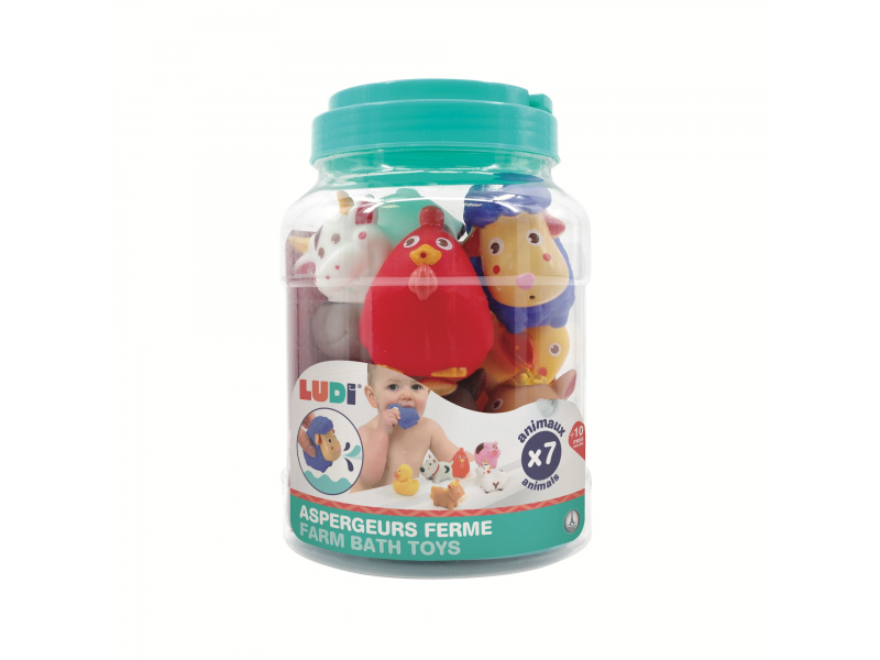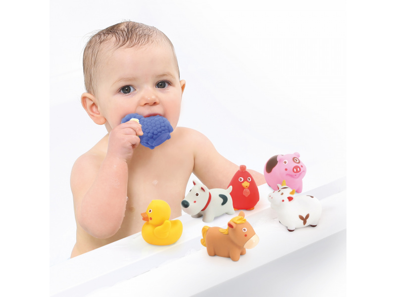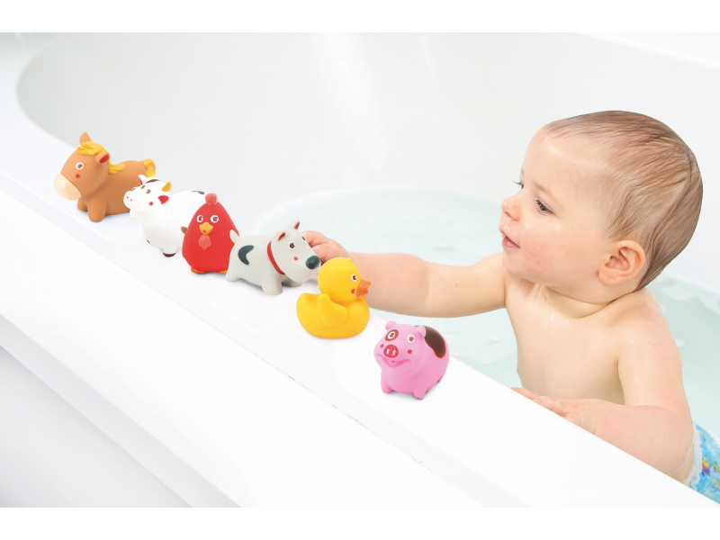 Sada stříkacích hraček v podobě zvířátek z farmy zajistí vašemu dítěti zábavu během koupání. Hračky jsou dodávány v praktické úložné nádobě. Vhodné od 10 měsíců.