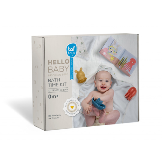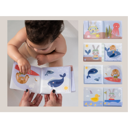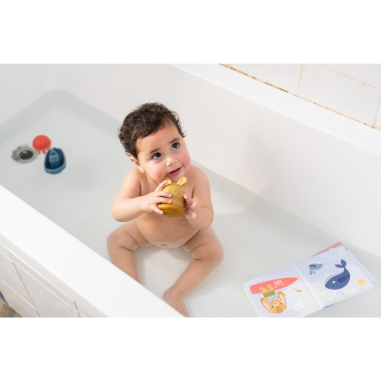 Dárková sada hraček do koupele s motivy ze života na moři obsahuje dvě stříkací šroubovací hračky do vody, lodičku, omyvatelnou knížku s krásnými ilustracemi a jemnou měkkou osušku s kapucí. Silikonové stříkací hračky jsou šroubovací pro snadné čištění bez rizika tvoření plísní uvnitř. Rozměry osušky: 70 x 70 cm Vhodné pro děti od narození.