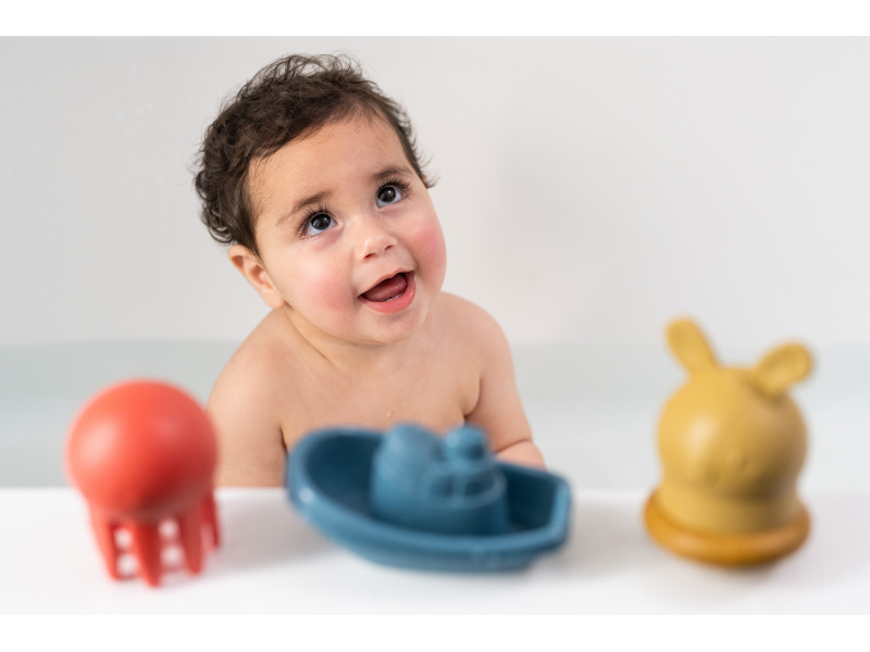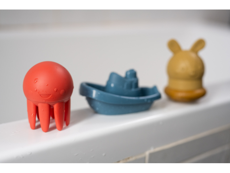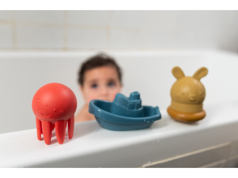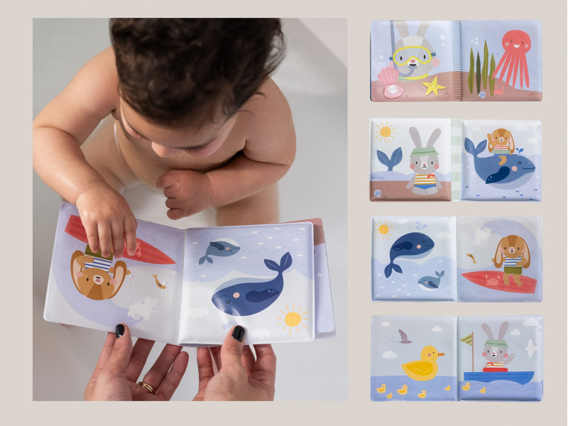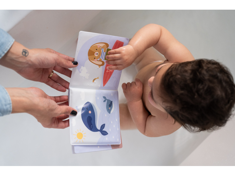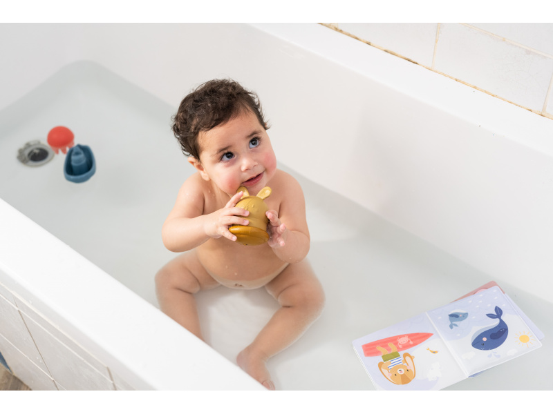 Dárková sada hraček do koupele s motivy ze života na moři obsahuje dvě stříkací šroubovací hračky do vody, lodičku, omyvatelnou knížku s krásnými ilustracemi a jemnou měkkou osušku s kapucí. Silikonové stříkací hračky jsou šroubovací pro snadné čištění bez rizika tvoření plísní uvnitř. Rozměry osušky: 70 x 70 cm Vhodné pro děti od narození.