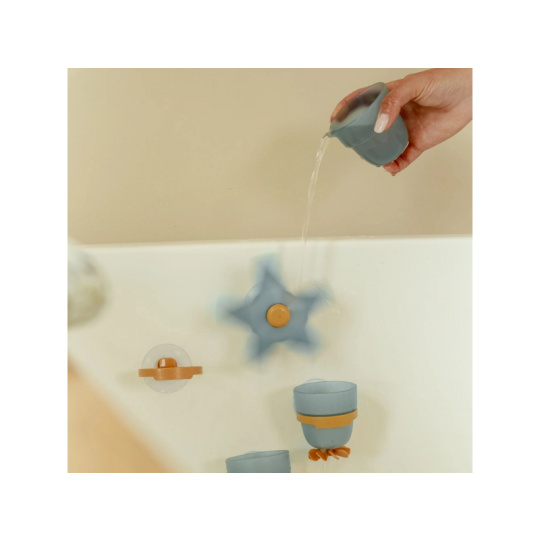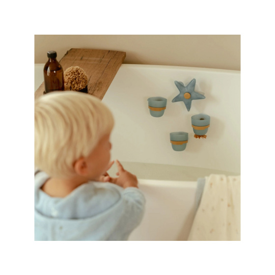 Proměňte koupání v radostnou hru se sadou kelímků Little Dutch! Tento hravý set obsahuje vodní mlýnek ve tvaru hvězdice, dva kelímky a nalévací hrneček, které lze pomocí přísavek snadno připevnit na stěnu vany nebo sprchy. Stačí nalít vodu na hvězdici a sledovat, jak se začne točit – děti si přitom procvičují koordinaci, objevují zákonitosti pohybu vody a rozvíjejí jemnou motoriku. Jemné barvy a promyšlený design hračky dělají z koupání příjemný rituál plný fantazie a objevování. Podporuje rozvoj motoriky a zvídavosti Lze snadno upevnit na stěnu vany nebo sprchy Vyrobeno z bezpečných materiálů vhodných pro děti Balení obsahuje 4 prvky s přísavkami: hvězdici, 2 kelímky, 1 nalévací hrneček Vhodné pro děti od 10 měsíců.