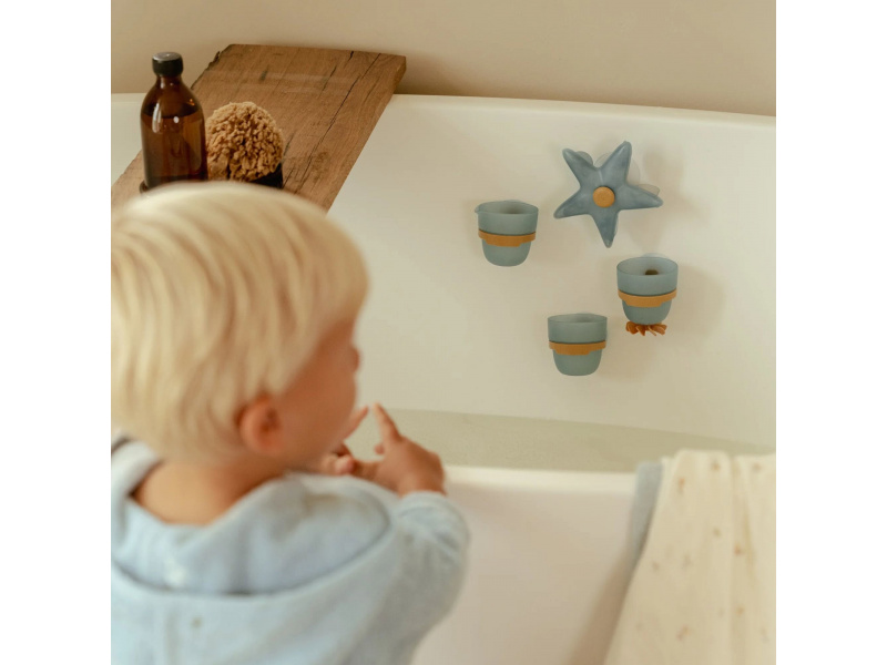 Proměňte koupání v radostnou hru se sadou kelímků Little Dutch! Tento hravý set obsahuje vodní mlýnek ve tvaru hvězdice, dva kelímky a nalévací hrneček, které lze pomocí přísavek snadno připevnit na stěnu vany nebo sprchy. Stačí nalít vodu na hvězdici a sledovat, jak se začne točit – děti si přitom procvičují koordinaci, objevují zákonitosti pohybu vody a rozvíjejí jemnou motoriku. Jemné barvy a promyšlený design hračky dělají z koupání příjemný rituál plný fantazie a objevování. Podporuje rozvoj motoriky a zvídavosti Lze snadno upevnit na stěnu vany nebo sprchy Vyrobeno z bezpečných materiálů vhodných pro děti Balení obsahuje 4 prvky s přísavkami: hvězdici, 2 kelímky, 1 nalévací hrneček Vhodné pro děti od 10 měsíců.