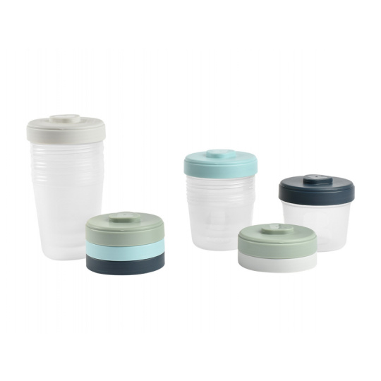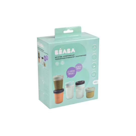 Sada kelímků Beaba na dětskou stravu z vysoce kvalitního polypropylenu s hermeticky uzavíratelným víčkem. Jídlo v kelímcích lze zamrazit či uložit do lednice a následně ohřívat v mikrovlnné troubě, ohřívačce nebo v Babycooku. Speciálně navržené víčko a dno kelímku umožňuje kelímky na sebe zacvaknout, což usnadňuje jejich uložení do lednice či mrazáku. Kelímky se dají popsat pro rychlou orientaci v lednici či mrazáku. Ryska v mililitrech slouží ke pro snadnému určení objemu příkrmu. Možno mýt v myčce. Zdravotně nezávadný materiál neobsahuje BPA, BPF, BPS, PVC ani ftaláty a je tak vhodný pro bezpečné uchovávání dětské stravy. Balení obsahuje 4x kelímek o objemu 150 ml a 4x kelímek o objemu 250 ml.