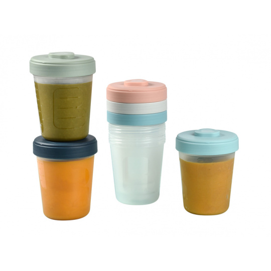 Sada kelímků Beaba na dětskou stravu z vysoce kvalitního polypropylenu s hermeticky uzavíratelným víčkem. Jídlo v kelímcích lze zamrazit či uložit do lednice a následně ohřívat v mikrovlnné troubě, ohřívačce nebo v Babycooku. Speciálně navržené víčko a dno kelímku umožňuje kelímky na sebe zacvaknout, což usnadňuje jejich uložení do lednice či mrazáku. Kelímky se dají popsat pro rychlou orientaci v lednici či mrazáku. Ryska v mililitrech slouží ke pro snadnému určení objemu příkrmu. Možno mýt v myčce. Zdravotně nezávadný materiál neobsahuje BPA, BPF, BPS, PVC ani ftaláty a je tak vhodný pro bezpečné uchovávání dětské stravy. Balení obsahuje 6x kelímek o objemu 250 ml.