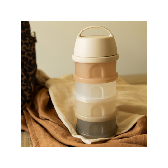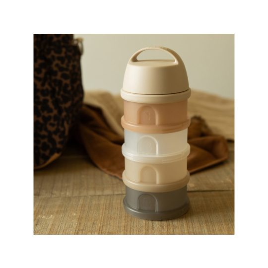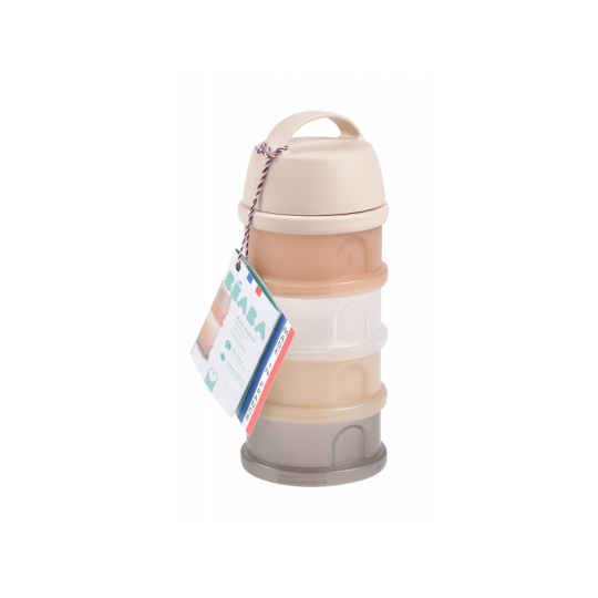 Praktický zásobník Beaba na čtyři dávky mléka je ideální na cesty či na noc. V připraveném mléce se mléčné bakterie množí velmi rychle, oddělené uchování kojenecké vody a sušeného mléka vám umožní připravit krmení těsně před použitím. Čtyři kompaktní dávkovače jsou propojené šroubovacím závitem, násypné víčko a ochranné víčko je rovněž šroubovací. Sušené mléko je hygienicky uložené, stačí jen nasypat s pomocí násypného víčka do jakékoli kojenecké láhve bez rizika rozsypání. Průhledný materiál umožňuje snadnou kontrolu obsahu kelímků. Ochranné víčko s držadlem umožňuje zavěsit celý zásobník kamkoli potřebujete, aby byl po ruce. Ve starším věku dítěte můžete kelímky používat na dětské svačinky. Čtyři šroubovací kelímky umožňují oddělené uchování jednotlivých částí svačinky, např. kousků ovoce nebo zeleniny, dětských sušenek apod. Možno mýt v myčce.