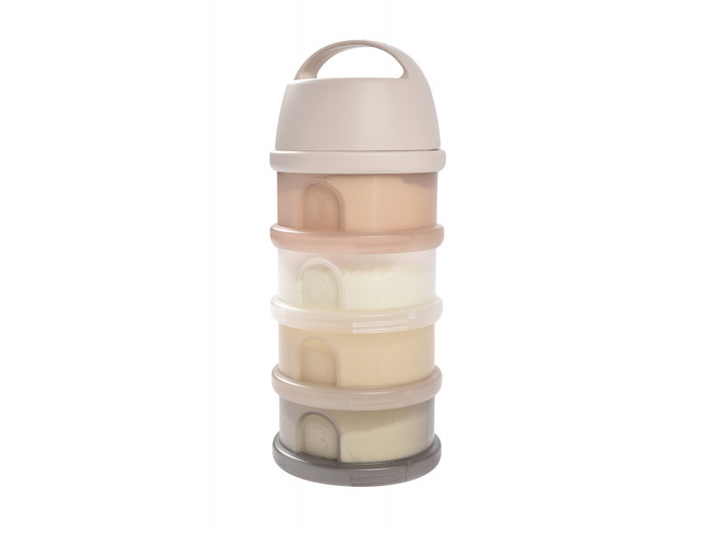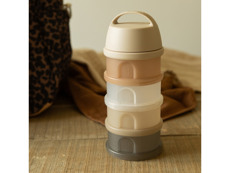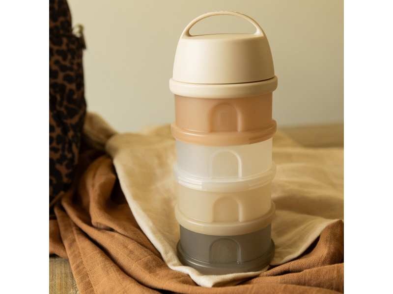 Praktický zásobník Beaba na čtyři dávky mléka je ideální na cesty či na noc. V připraveném mléce se mléčné bakterie množí velmi rychle, oddělené uchování kojenecké vody a sušeného mléka vám umožní připravit krmení těsně před použitím. Čtyři kompaktní dávkovače jsou propojené šroubovacím závitem, násypné víčko a ochranné víčko je rovněž šroubovací. Sušené mléko je hygienicky uložené, stačí jen nasypat s pomocí násypného víčka do jakékoli kojenecké láhve bez rizika rozsypání. Průhledný materiál umožňuje snadnou kontrolu obsahu kelímků. Ochranné víčko s držadlem umožňuje zavěsit celý zásobník kamkoli potřebujete, aby byl po ruce. Ve starším věku dítěte můžete kelímky používat na dětské svačinky. Čtyři šroubovací kelímky umožňují oddělené uchování jednotlivých částí svačinky, např. kousků ovoce nebo zeleniny, dětských sušenek apod. Možno mýt v myčce.