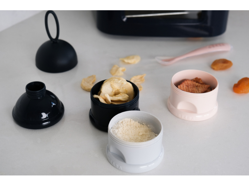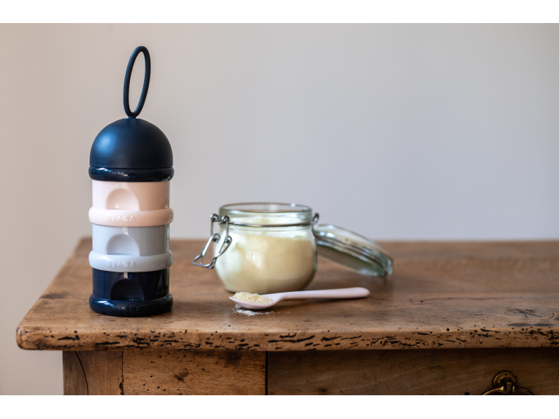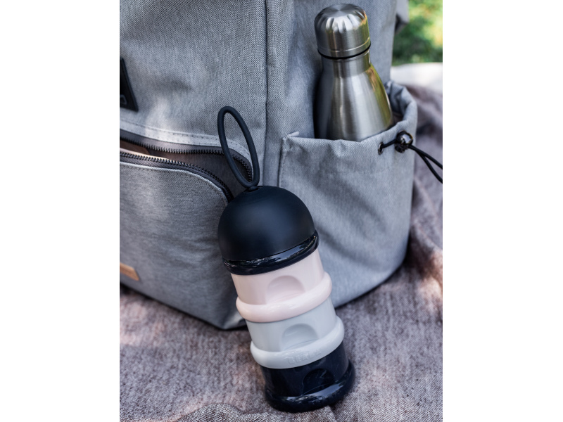 Praktický zásobník Beaba na tři dávky mléka je ideální na cesty či na noc. V připraveném mléce se mléčné bakterie množí velmi rychle, oddělené uchování kojenecké vody a sušeného mléka vám umožní připravit krmení těsně před použitím. Tři kompaktní dávkovače jsou propojené šroubovacím závitem, násypné víčko a ochranné víčko je rovněž šroubovací. Sušené mléko je hygienicky uložené, stačí jen nasypat s pomocí násypného víčka do jakékoli kojenecké láhve bez rizika rozsypání. Ochranné víčko s očkem umožňuje zavěsit celý zásobník kamkoli potřebujete, aby byl po ruce. Ve starším věku dítěte můžete kelímky používat na dětské svačinky. Tři šroubovací kelímky umožňují oddělené uchování jednotlivých částí svačinky, např. kousků ovoce nebo zeleniny, dětských sušenek apod. Možno mýt v myčce.
