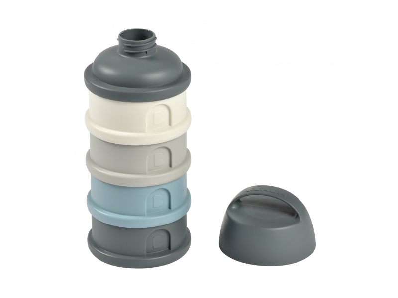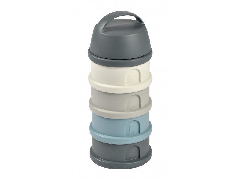 Praktický zásobník Beaba na čtyři dávky mléka je ideální na cesty či na noc. V připraveném mléce se mléčné bakterie množí velmi rychle, oddělené uchování kojenecké vody a sušeného mléka vám umožní připravit krmení těsně před použitím. Čtyři kompaktní dávkovače jsou propojené šroubovacím závitem, násypné víčko a ochranné víčko je rovněž šroubovací. Sušené mléko je hygienicky uložené, stačí jen nasypat s pomocí násypného víčka do jakékoli kojenecké láhve bez rizika rozsypání. Ochranné víčko s držadlem umožňuje zavěsit celý zásobník kamkoli potřebujete, aby byl po ruce. Ve starším věku dítěte můžete kelímky používat na dětské svačinky. Čtyři šroubovací kelímky umožňují oddělené uchování jednotlivých částí svačinky, např. kousků ovoce nebo zeleniny, dětských sušenek apod. Možno mýt v myčce.