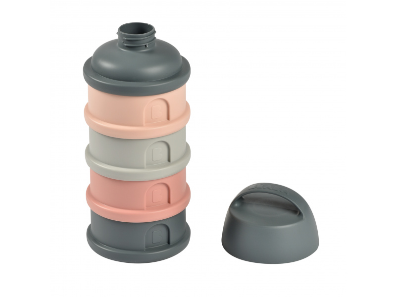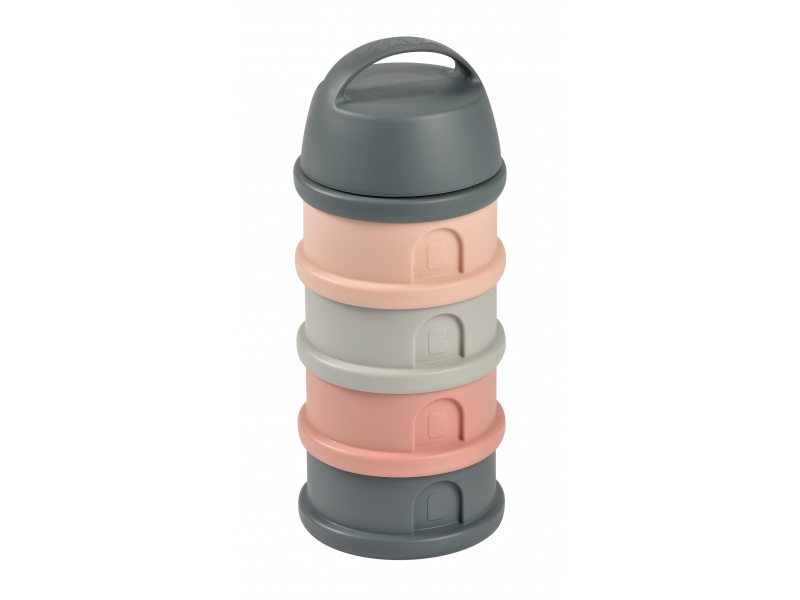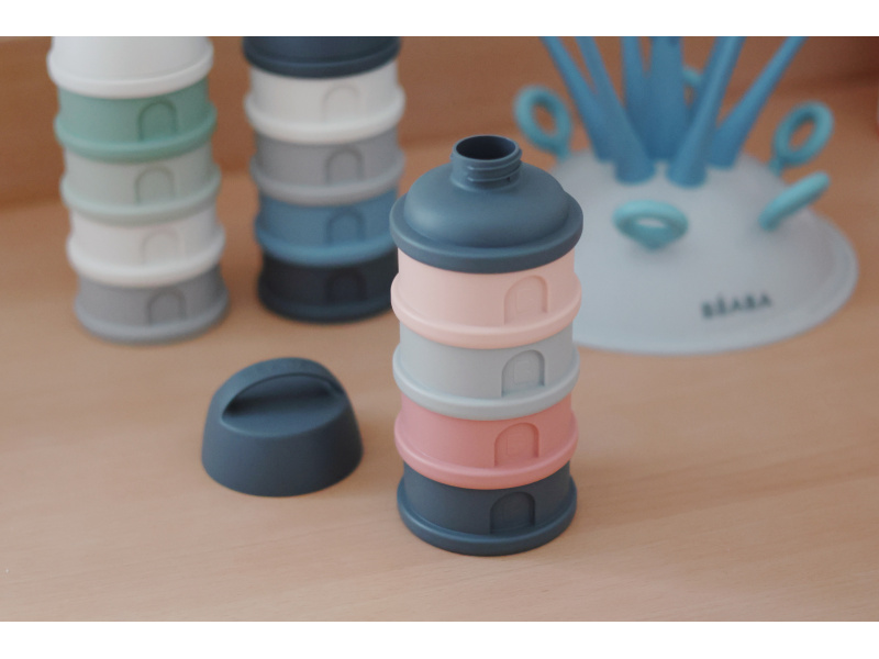 Praktický zásobník Beaba na čtyři dávky mléka je ideální na cesty či na noc. V připraveném mléce se mléčné bakterie množí velmi rychle, oddělené uchování kojenecké vody a sušeného mléka vám umožní připravit krmení těsně před použitím. Čtyři kompaktní dávkovače jsou propojené šroubovacím závitem, násypné víčko a ochranné víčko je rovněž šroubovací. Sušené mléko je hygienicky uložené, stačí jen nasypat s pomocí násypného víčka do jakékoli kojenecké láhve bez rizika rozsypání. Ochranné víčko s držadlem umožňuje zavěsit celý zásobník kamkoli potřebujete, aby byl po ruce. Ve starším věku dítěte můžete kelímky používat na dětské svačinky. Čtyři šroubovací kelímky umožňují oddělené uchování jednotlivých částí svačinky, např. kousků ovoce nebo zeleniny, dětských sušenek apod. Možno mýt v myčce.