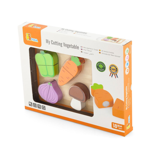 Sada na kríjení od společnosti Viga je ideální hračkou, která podněcuje dětskou představivost. Při společné hře bude moci každý rodič své dítě naučit, jak v budoucnu používat ostré kuchyňské doplňky. Jako bonus jsou všechny výrobky spojeny suchým zipem, což umožňuje je opět složit dohromady. Celá sada je vyrobena z lakovaného dřeva a natřena nezávadnými barvami .
