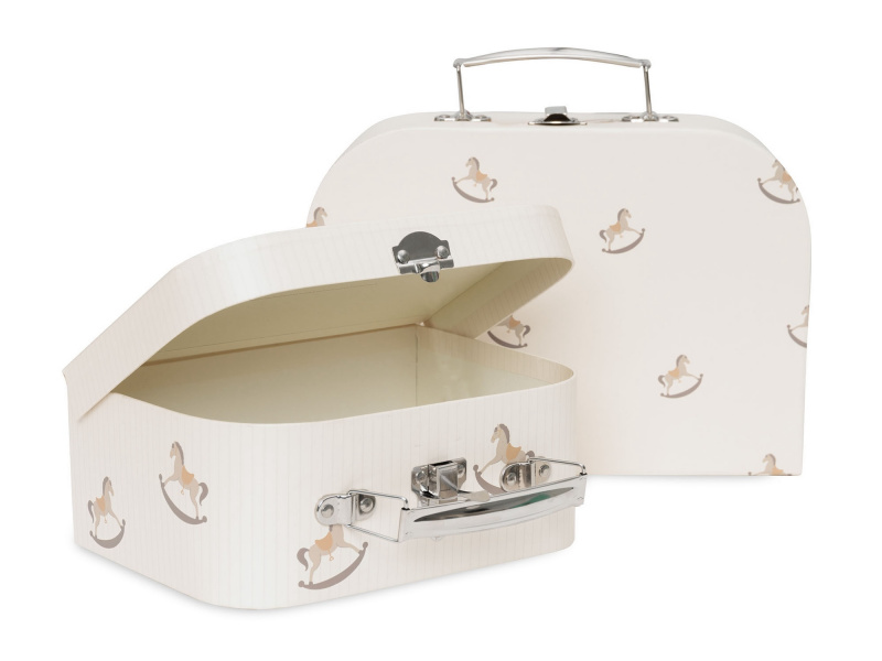 Klasické dětské kufříky v kvalitním provedení s krásným potiskem jsou ideální pro uložení drobných hraček, výtvarných potřeb či důležitých dětských pokladů. Menší kufřík má velikost vhodnou pro uložení do většího kufříku. Složení: papír, kovový zámek a držadlo Rozměry většího kufříku: 25 x 17,5 x 8,5 cm