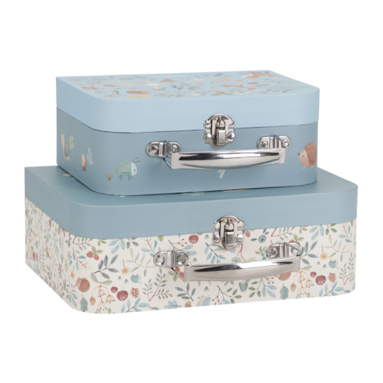 Sada klasických dětských kufříků v kvalitním provedení s krásným potiskem motivů ze života v lese. Sadu tvoří dva kufříky, menší kufřík má velikost, která se vejde do většího kufříku pro úsporu místa při skladování. Oba kufříky mají klasické kovové madlo pro snadné přenášení a zámek pro bezpečné uzavření obsahu. Kufříky jsou ideální pro ukládání drobných hraček, výtvarných potřeb apod. a budou sloužit i jako krásná dekorace v dětském pokoji. Sada je součástí designové kolekce hraček a doplňků Little Dutch Forest Friends inspirované životem v lese. Rozměry většího kufříku: 25 x 20 x 8,9 cm Vhodné pro děti od 2 let.