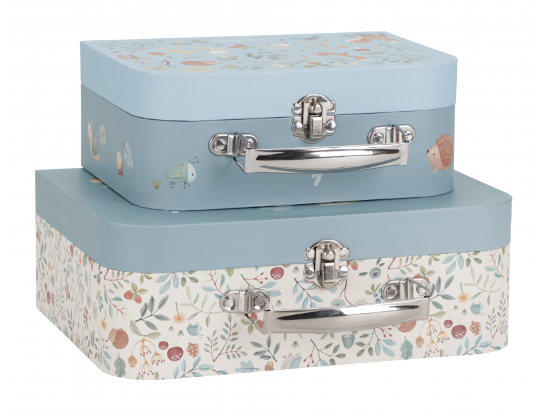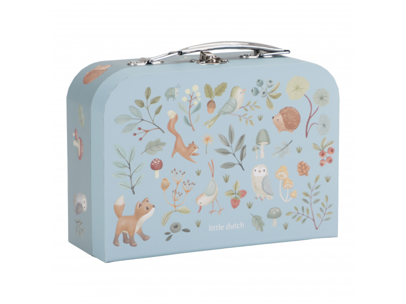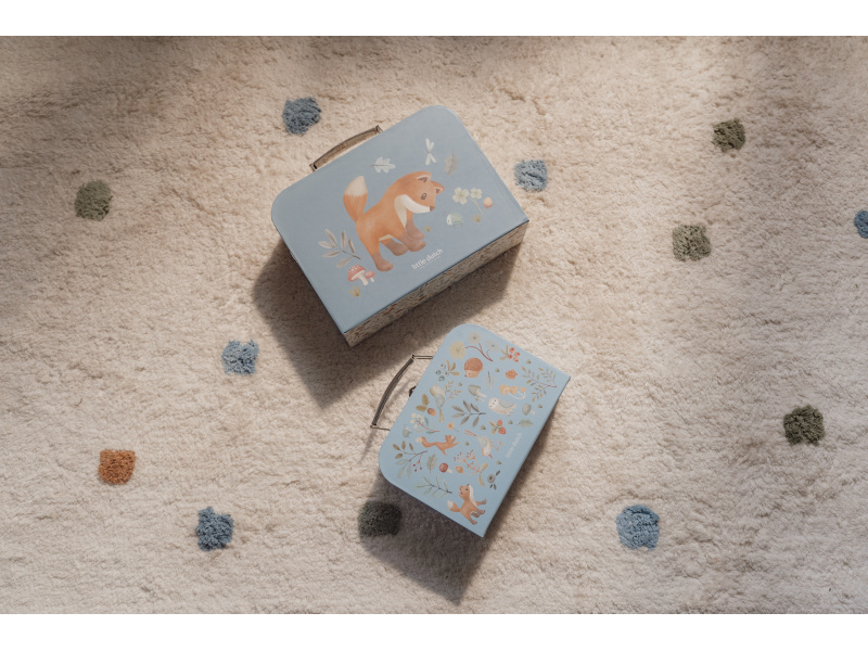 Sada klasických dětských kufříků v kvalitním provedení s krásným potiskem motivů ze života v lese. Sadu tvoří dva kufříky, menší kufřík má velikost, která se vejde do většího kufříku pro úsporu místa při skladování. Oba kufříky mají klasické kovové madlo pro snadné přenášení a zámek pro bezpečné uzavření obsahu. Kufříky jsou ideální pro ukládání drobných hraček, výtvarných potřeb apod. a budou sloužit i jako krásná dekorace v dětském pokoji. Sada je součástí designové kolekce hraček a doplňků Little Dutch Forest Friends inspirované životem v lese. Rozměry většího kufříku: 25 x 20 x 8,9 cm Vhodné pro děti od 2 let.