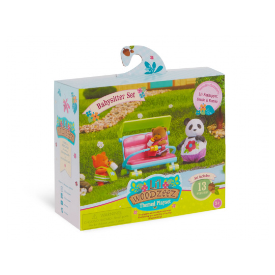 Když musí rodiče dětí z městečka Honeysuckle Hollow do práce, chůva panda Liv se o jejich děti spolehlivě postará. S kočárkem pro dvě děti je snadné je po nakrmení a přebalení vzít na procházku. Sada obsahuje chůvu pandu Liv, liščí mládě Cookie, medvídě Romeo, kočárek, 4 dětské plenky, 2 kojenecké láhve a 2 bryndáčky. Postavičky zvířátek Li'l Woodzeez jsou vyrobené z měkkého příjemného materiálu a mají pohyblivé ruce, nohy i hlavy pro zábavnou předstíranou hru. Každá postavička má na sobě krásné barevné oblečení. Další postavičky zvířátek, domečky, obchody, dopravní prostředky apod. se prodávají samostatně. Všechny postavičky a doplňky Li'l Woodzeez jsou navzájem kompatabilní a umožní vám vytvořit originální městečko pro nekonečnou hru rozvíjející fantazii a kreativitu vašeho dítěte. Vhodné pro děti od 3 let.