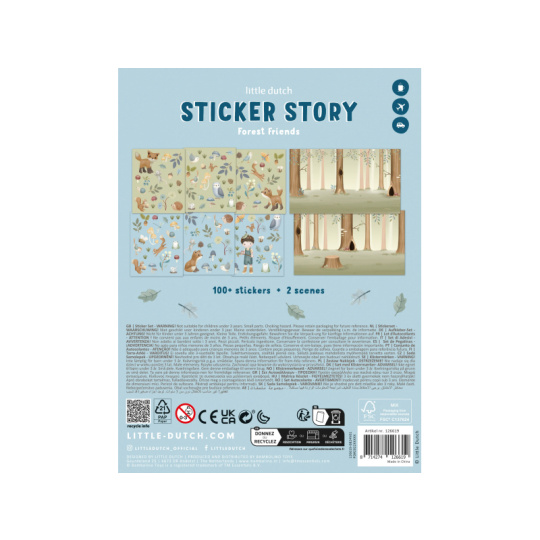 Sada šesti archů krásných samolepek z kolekce Little Dutch Forest Friends s krásnými motivy ze života v lese. Samolepky jsou vhodné pro lepení na papír. Balení obsahuje více než 100 papírových samolepek na šesti arších a dva obrázky, které je možné využít jako pozadí vlastního originálního obrazu se samolepkami. Sada je součástí designové kolekce hraček a doplňků Little Dutch Forest Friends inspirované životem v lese. Rozměry: 19,5 x 12,5 x 0,5 cm Vhodné pro děti od 3 let.