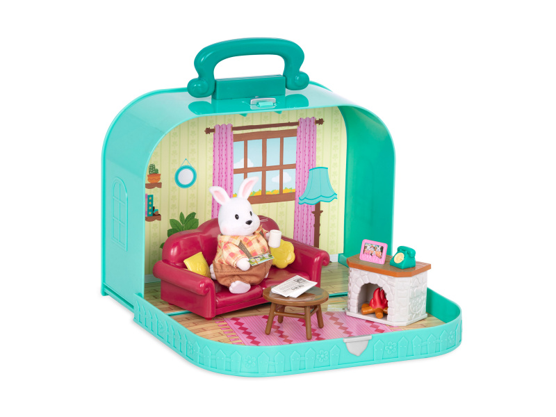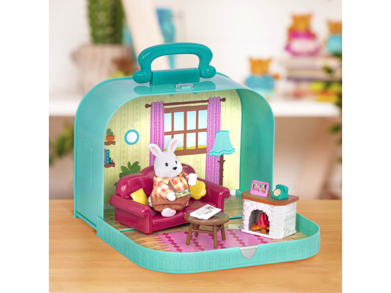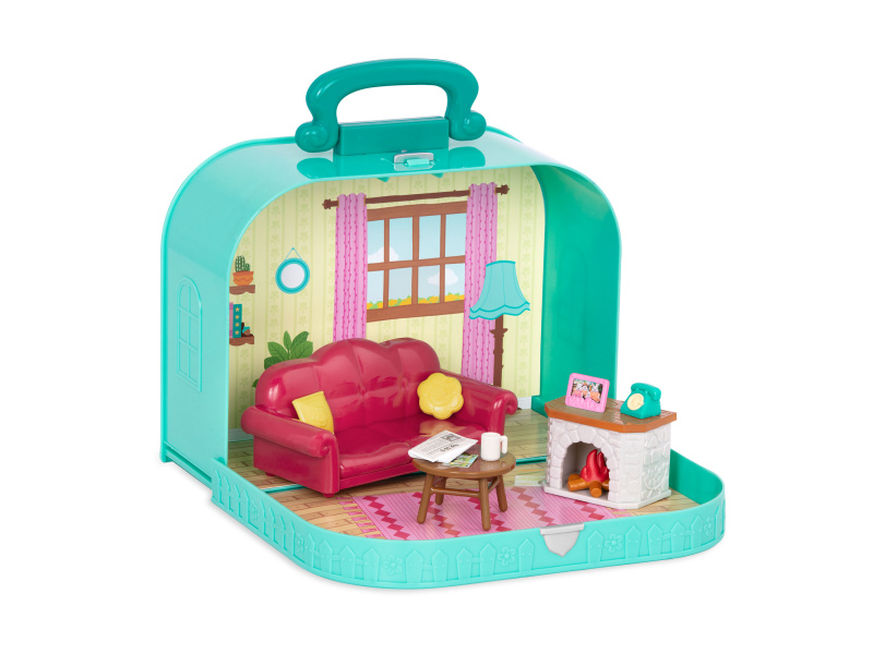 Cestovní sada hraček Li'l Woodzeeze v praktickém kufříku umožní vašemu dítěti hrát si kdekoli na dovolené, výletech či během víkendu u prarodičů. Kufřík se po otevření promění v bohatě vybavený obývací pokoj s nábytkem a doplňky. Samostatně prodávané postavičky zvířátek Li'l Woodzeez jsou vyrobené z měkkého příjemného materiálu a mají pohyblivé ruce, nohy i hlavy pro zábavnou předstíranou hru. Každá postavička má na sobě krásné barevné oblečení. Další domečky, obchody, dopravní prostředky apod. se prodávají samostatně. Všechny postavičky a doplňky Li'l Woodzeez jsou navzájem kompatabilní a umožní vám vytvořit originální městečko pro nekonečnou hru rozvíjející fantazii a kreativitu vašeho dítěte. 13-dílná sada obsahuje kufřík, pohovku, 2 polštáře, rámeček, 2 fotografie, noviny, krb, oheň, konferenční stolek, telefon a hrnek. Rozměry: 23 x 9,2 x 17,5 cm Vhodné pro děti od 3 let.