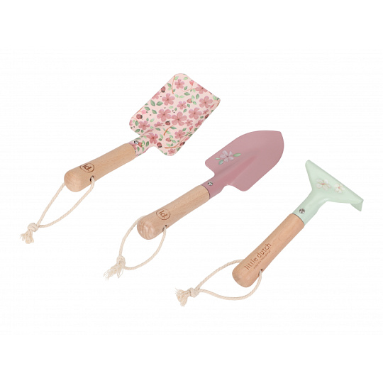 Malá zahradnice či zahradník potřebuje pro své zahradničení své vlastní nářadí! Tato sada obsahuje dvě lopatky a hrabičky v kvalitním provedení z odolného kovu s dřevěnou rukojetí pro pohodlné uchopení. Nářadí je zdobené krásným potiskem, praktická poutka umožňují po skončení práce zavěšení nářadí kdekoli, kde bude připravené pro další použití. Nářadí s krásným potiskem je součástí designové kolekce hraček a doplňků Little Dutch Fairy Garden, inspirované životem na zahradě. Vhodné pro děti od 3 let.