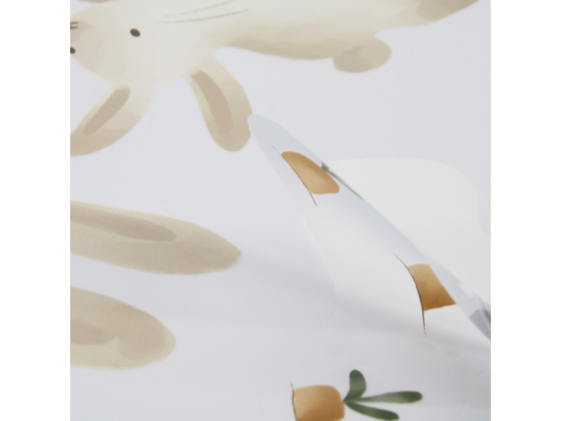 Krásné samolepky v podobě králičí rodinky a mrkviček jsou určené pro použití na stěně, okně či jakémkoli hladkém a rovném povrchu. Stanou se krásnou dekorací v dětském pokoji a budou pomáhat rozvíjet fantazii vašeho dítěte. Samolepky z vinylového materiálu s matným povrchem a průhlednými okraji se snadno aplikují a snadno je i odstraníte. Samolepky jsou součástí designové kolekce hraček a doplňků Little Dutch Baby Bunny. Balení obsahuje obsahuje samolepky na 2 arších formátu 42 x 30 cm.