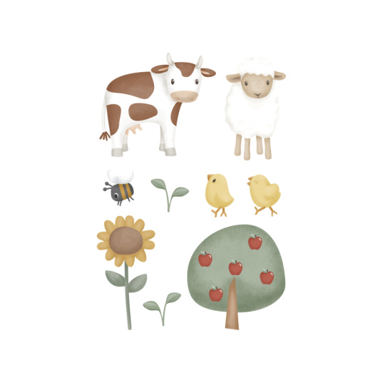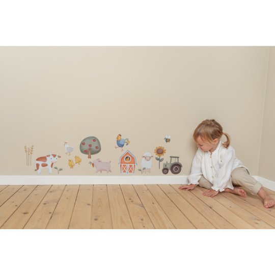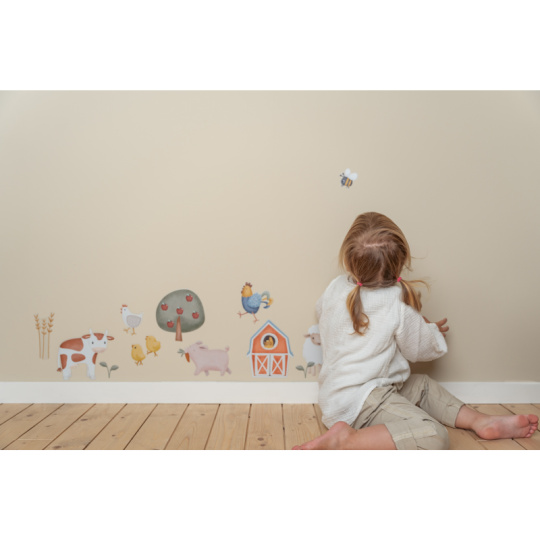Krásné samolepky v podobě motivů ze života na farmě jsou určené pro použití na stěně, okně či jakémkoli hladkém a rovném povrchu. Stanou se krásnou dekorací v dětském pokoji a budou pomáhat rozvíjet fantazii vašeho dítěte. Samolepky z vinylového materiálu s matným povrchem a průhlednými okraji se snadno aplikují a snadno je i odstraníte. Samolepky jsou součástí designové kolekce hraček a doplňků Little Dutch Farma. Balení obsahuje obsahuje samolepky na 2 arších formátu 42 x 30 cm.