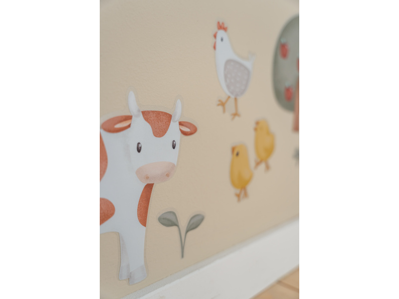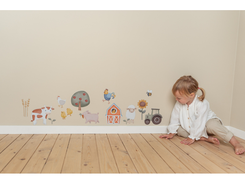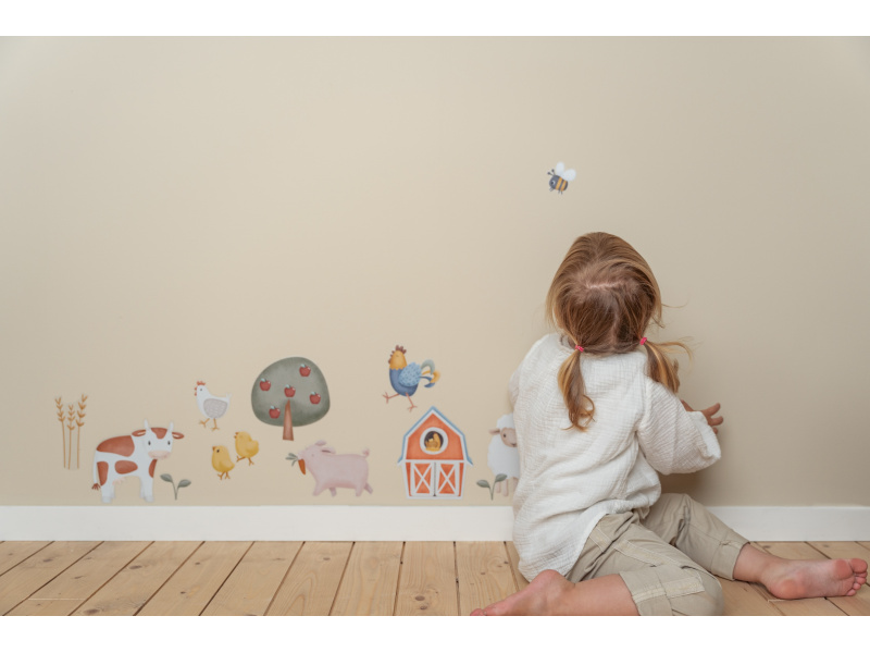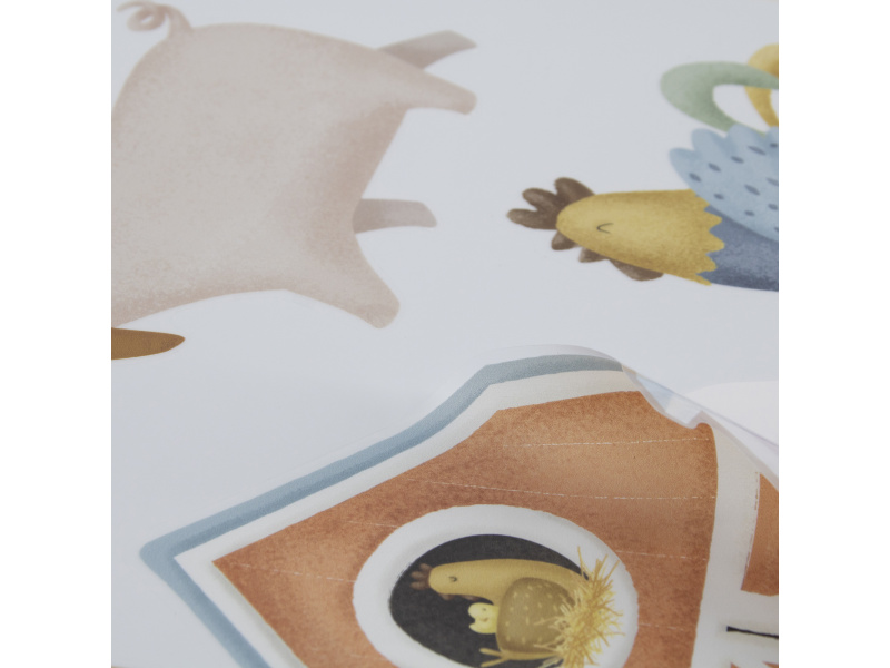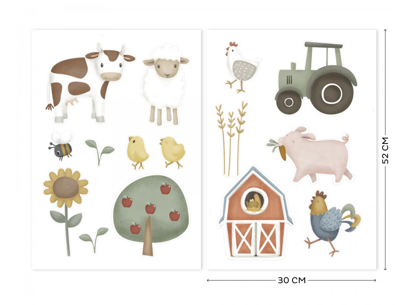 Krásné samolepky v podobě motivů ze života na farmě jsou určené pro použití na stěně, okně či jakémkoli hladkém a rovném povrchu. Stanou se krásnou dekorací v dětském pokoji a budou pomáhat rozvíjet fantazii vašeho dítěte. Samolepky z vinylového materiálu s matným povrchem a průhlednými okraji se snadno aplikují a snadno je i odstraníte. Samolepky jsou součástí designové kolekce hraček a doplňků Little Dutch Farma. Balení obsahuje obsahuje samolepky na 2 arších formátu 42 x 30 cm.
