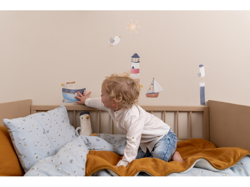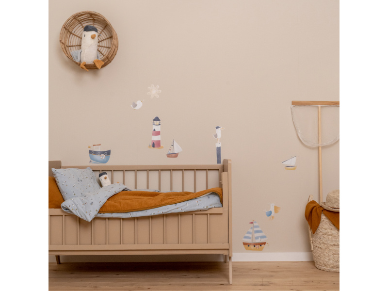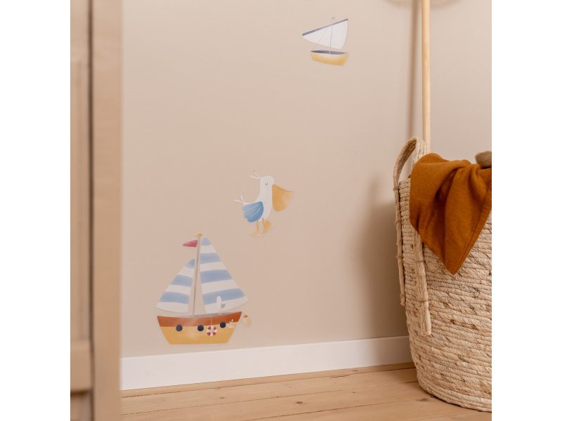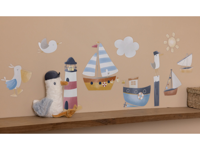 Krásné samolepky v podobě lodí, mořských ptáků a dalších motivů z kolekce Little Dutch Námořnický záliv jsou určené pro použití na stěně, okně či jakémkoli hladkém a rovném povrchu. Stanou se krásnou dekorací v dětském pokoji a budou pomáhat rozvíjet fantazii vašeho dítěte. Samolepky z vinylového materiálu s matným povrchem a průhlednými okraji se snadno aplikují a snadno je i odstraníte. Samolepky jsou součástí designové kolekce Little Dutch Námořnický záliv, ve které najdete ložní prádlo, dekorativní doplňky do dětského pokoje, dřevěné a plyšové hračky i jídelní doplňky pro dětské stolování. Balení obsahuje obsahuje 10 samolepek na 2 arších formátu 42 x 30 cm.