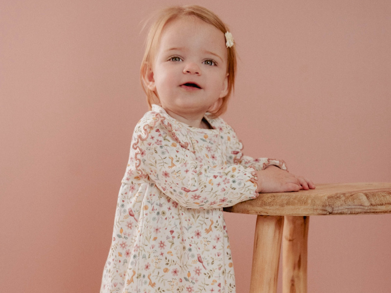 Šaty z jemné organické bavlny s krásným květinovým potiskem a jemnými volánky rozzáří oči každé malé parádnici. Šaty jsou součástí designové kolekce oblečení, hraček a doplňků Little Dutch Fairy Garden, inspirované životem na zahradě. Složení: 100% organická bavlna Možno prát v pračce na jemný cyklus do 30° C, nesušte v sušičce.