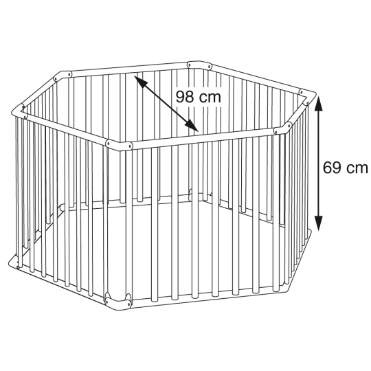 Rozměr ohrádky je 98 x 98 cm/ výška ohrádky je 69 cm