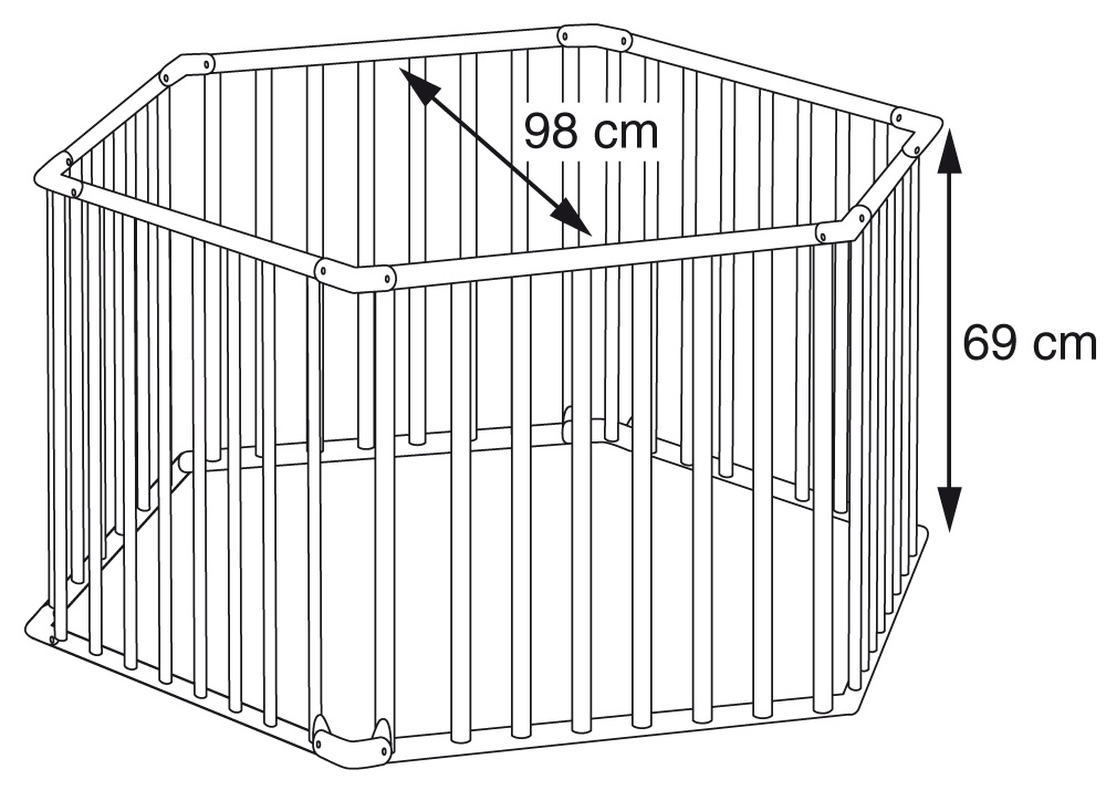 Rozměr ohrádky je 98 x 98 cm/ výška ohrádky je 69 cm