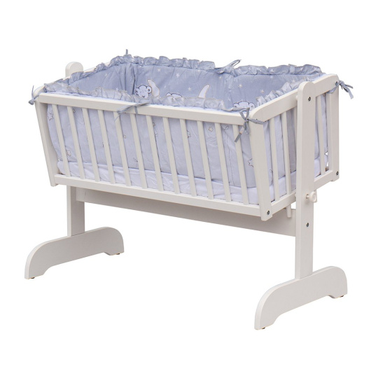 Součástí kompletní výbavy je matrace, polštářek, přikrývka a ložní prádlo v příjemných barvách, které vytváří útulné prostředí. Kolébka je lehká a snadno přemístitelná, takže ji můžete mít vždy blízko sebe – v ložnici, obýváku nebo dětském pokoji.