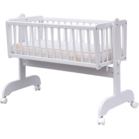 Krásná kolébka z borovicoveho dřeva je ideální pro usínání miminek.
