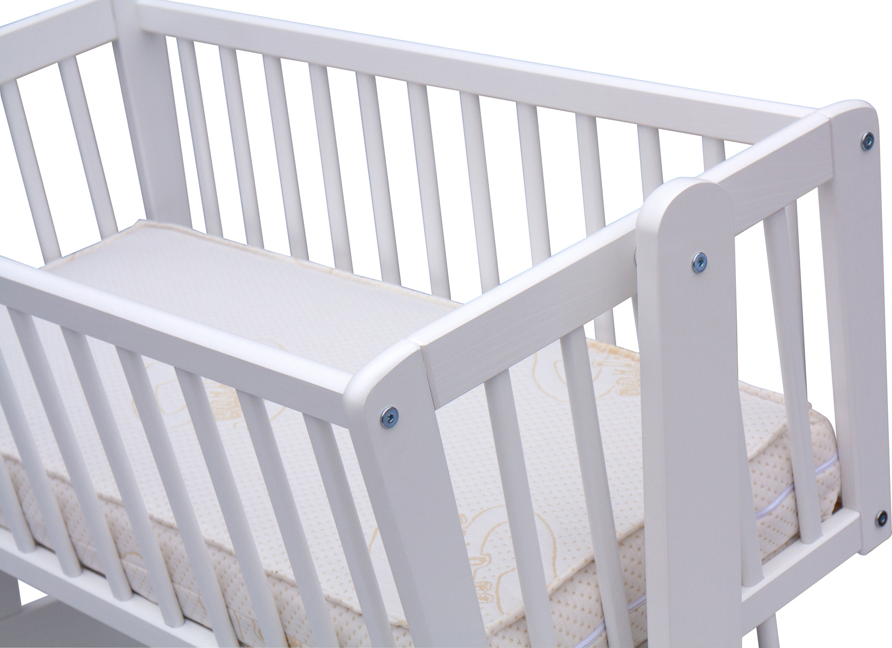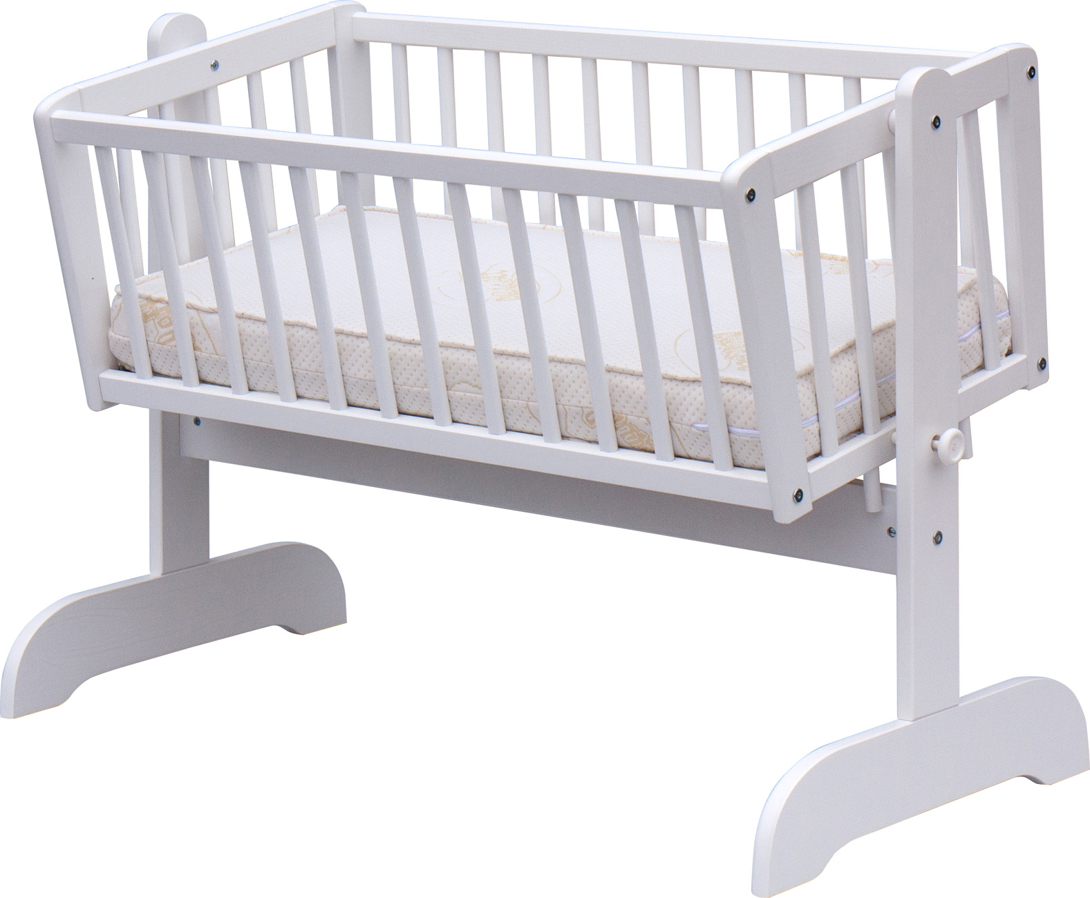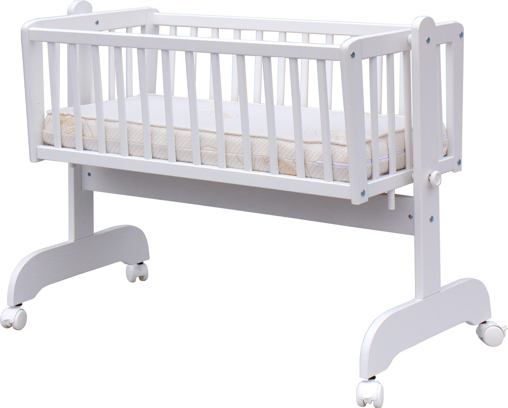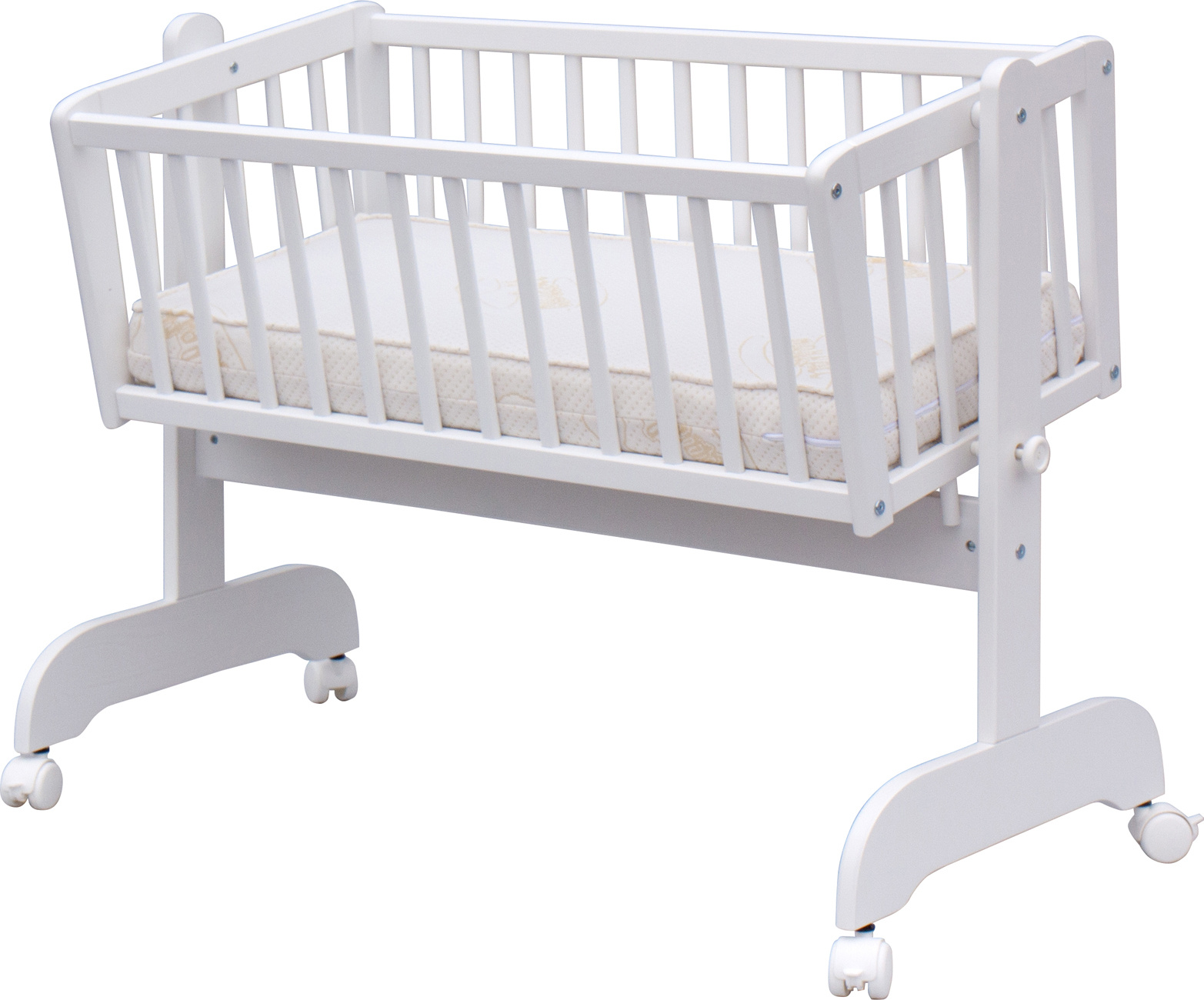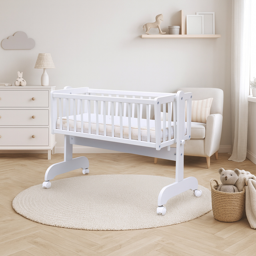 Nafocená matrace ani kolečka nejsou součástí kolébky, ale lze je objednat z naší nabídky.