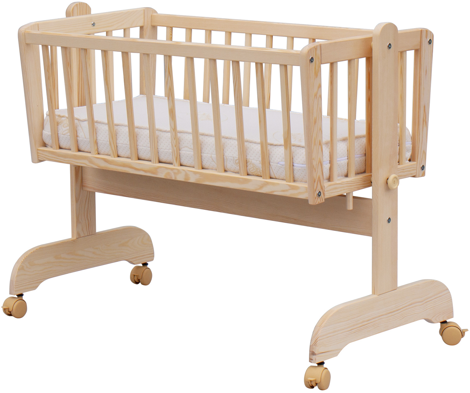 Nafocená matrace ani kolečka nejsou součástí kolébky, ale lze je objednat z naší nabídky.