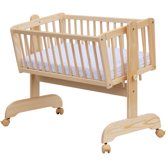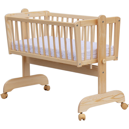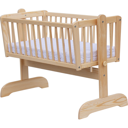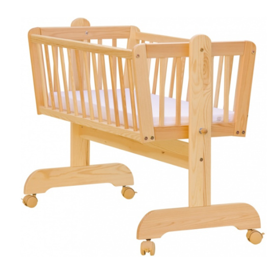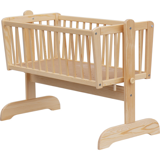 Krásná kolébka z borovicoveho dřeva je ideální pro usínání miminek.