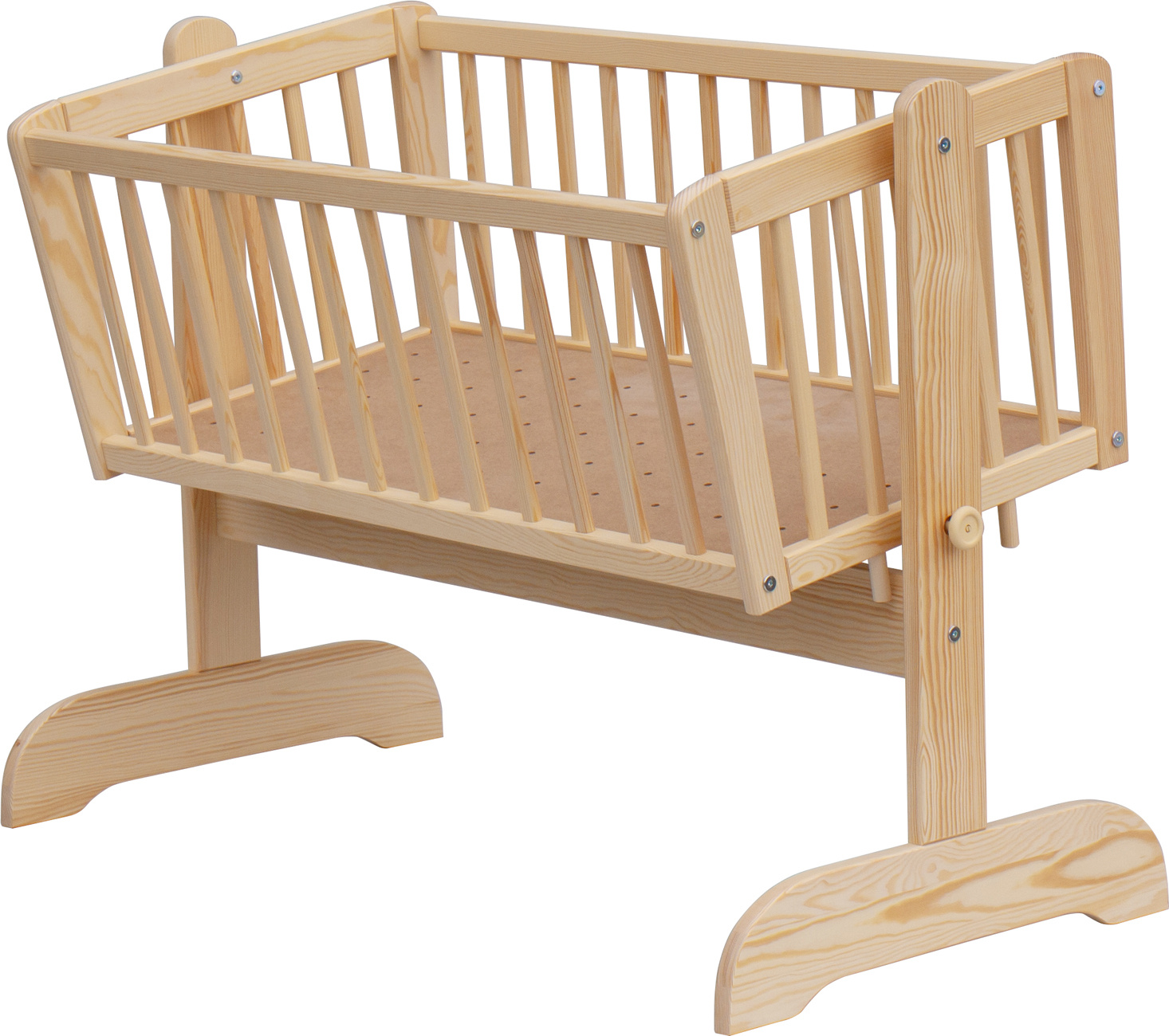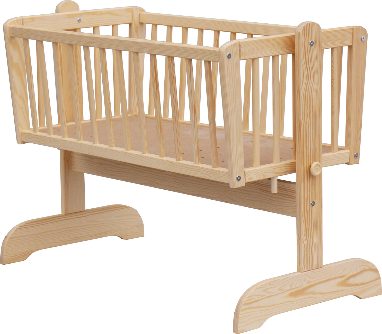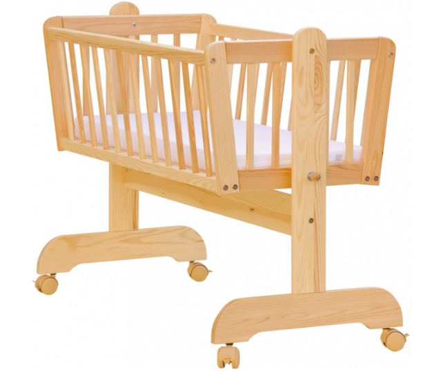Krásná kolébka z borovicoveho dřeva je ideální pro usínání miminek.