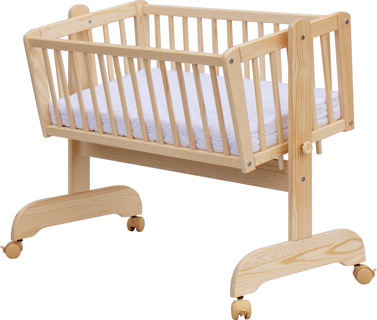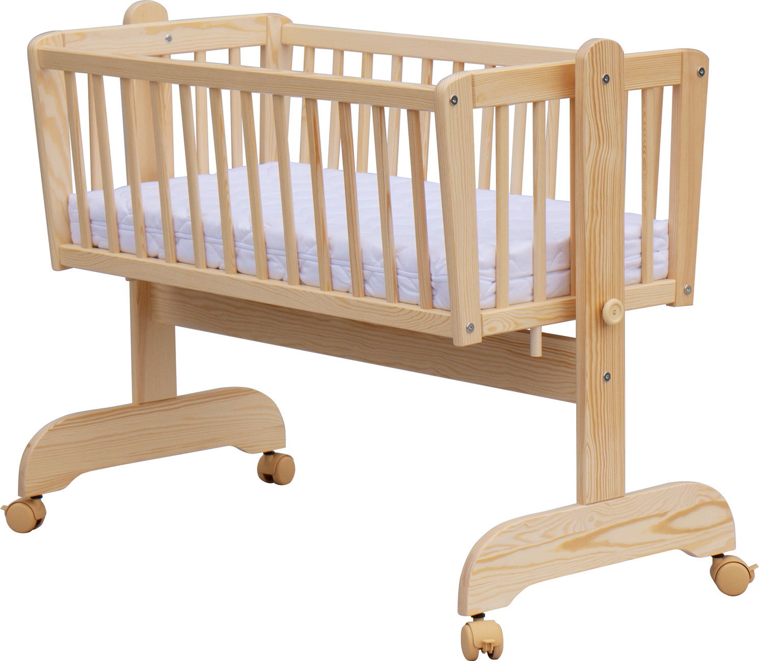Nafocená matrace ani kolečka nejsou součástí kolébky, ale lze je objednat z naší nabídky.