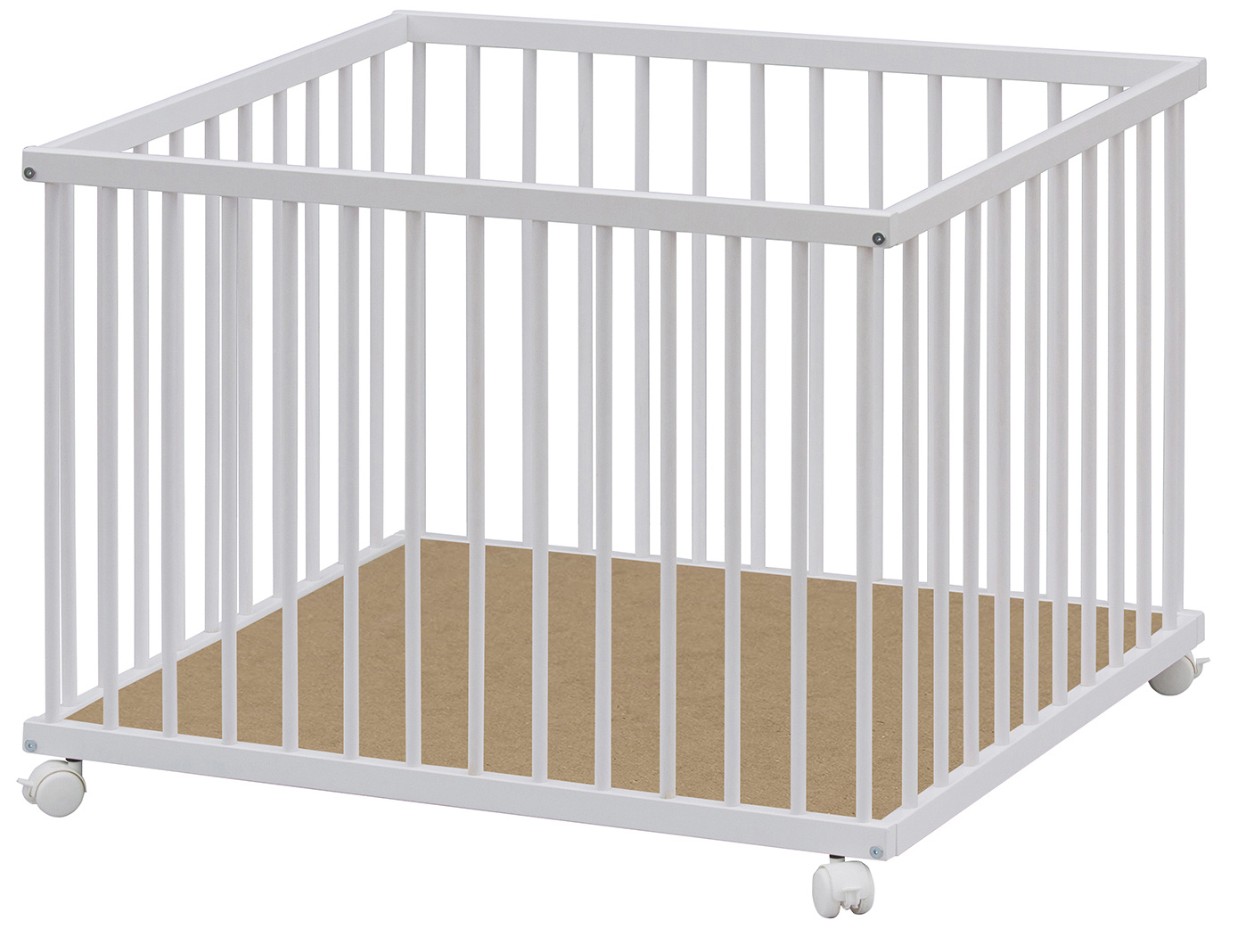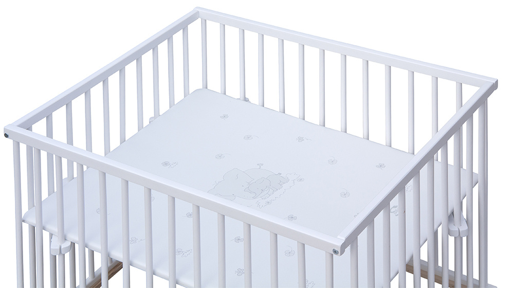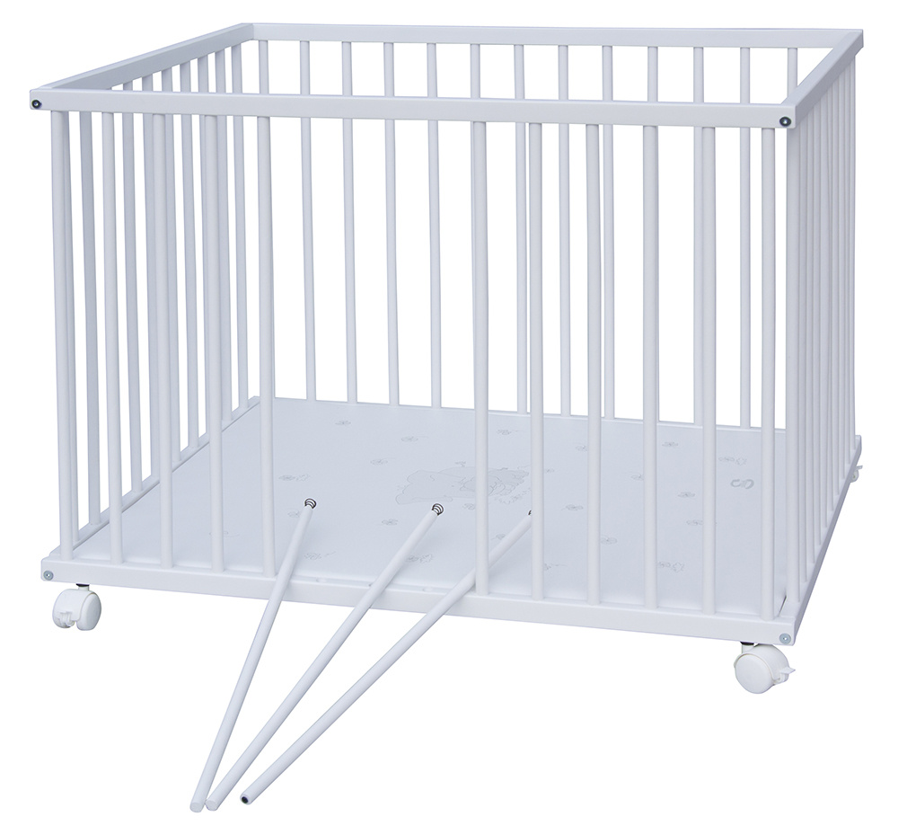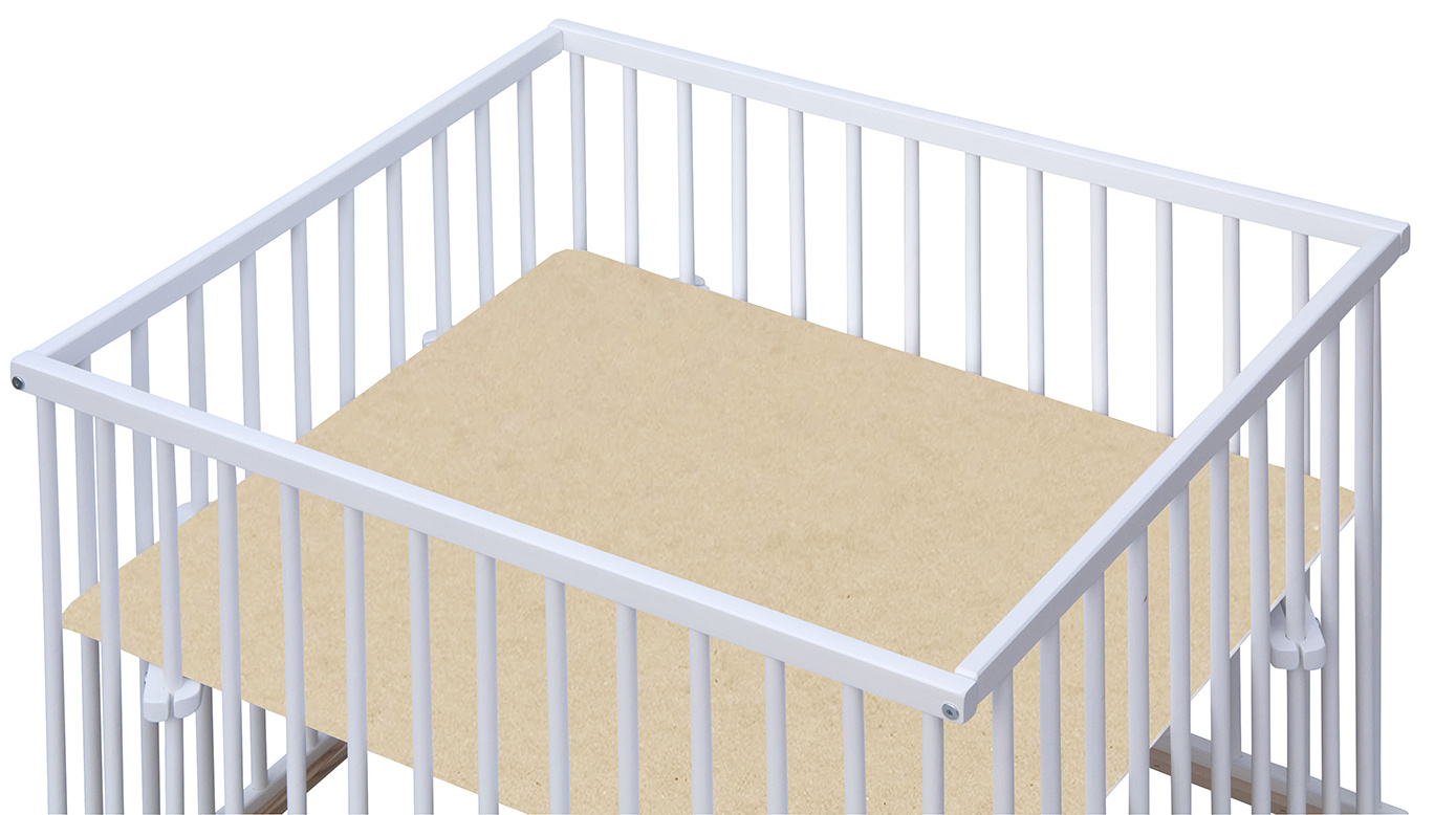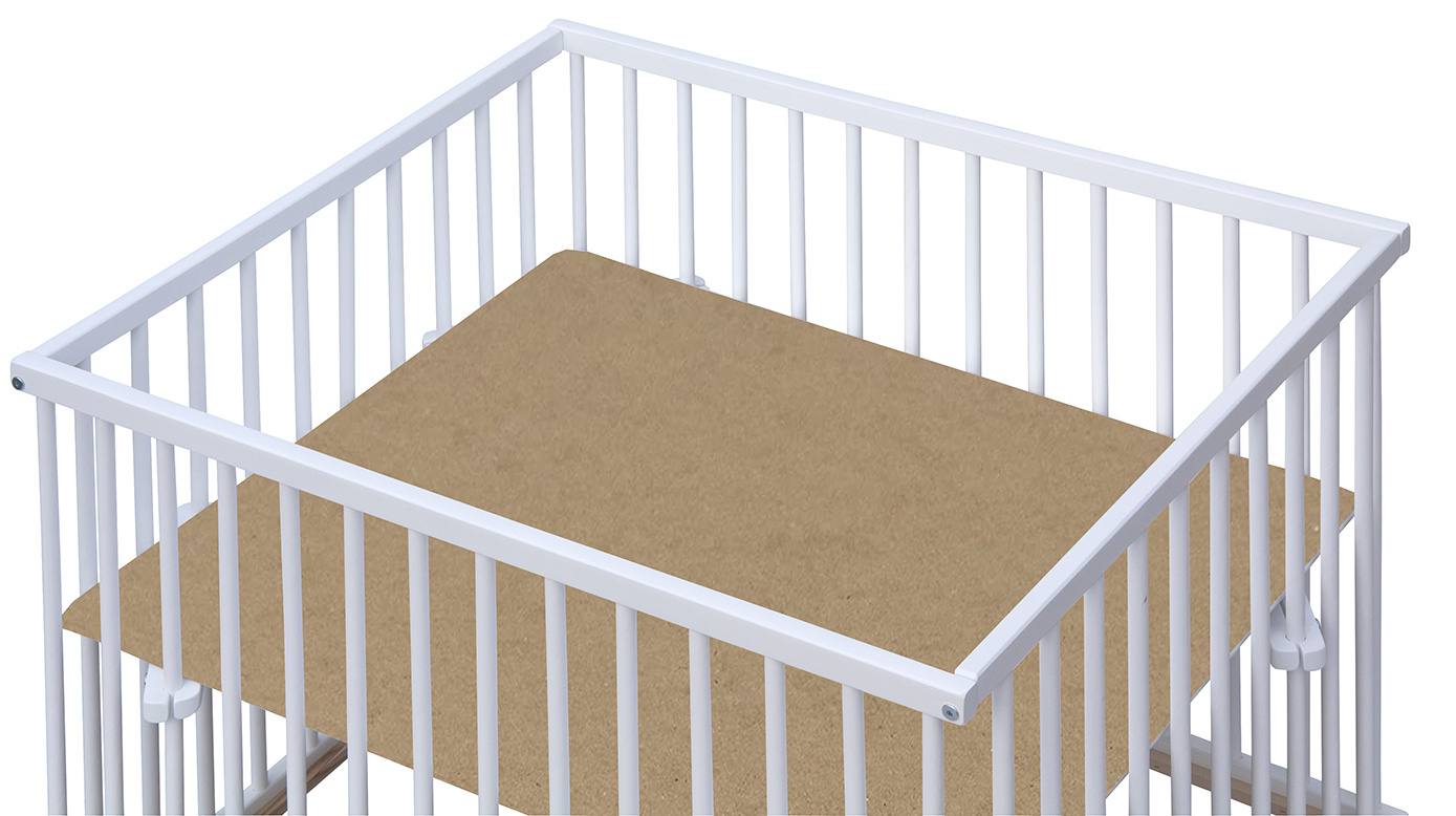 Dno je vyrobeno z MDF pro snazší údržbu. Otvory na kolečka jsou předvrtány, ale kolečka nejsou součástí ohrádky, lze si je doobjednat z naší nabídky. K ohrádce si můžete vybrat z nabídky hracích dek.