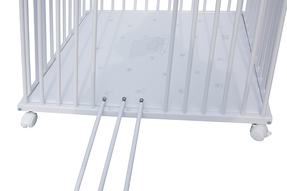 Dno ohrádky je možné libovolně výškově polohovat. Mechanizmus polohování horního lůžka je součástí ohrádky.