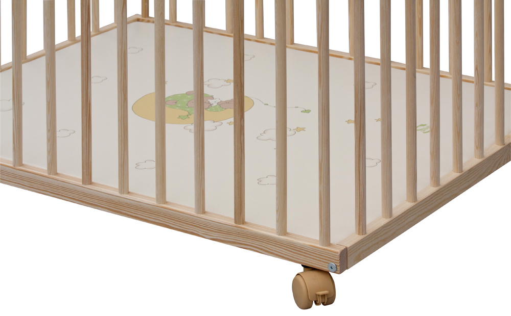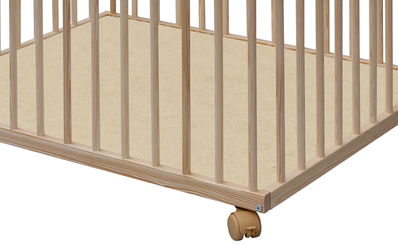 Dno je vyrobeno z MDF pro snazší údržbu. Otvory na kolečka jsou předvrtány, ale kolečka nejsou součástí ohrádky, lze si je doobjednat z naší nabídky. K ohrádce si můžete vybrat z nabídky hracích dek.
