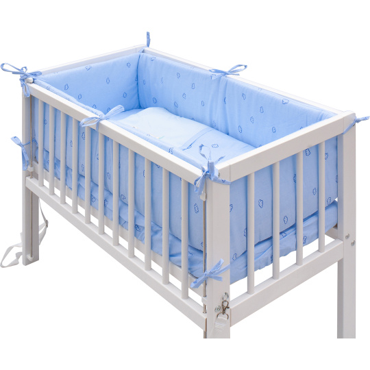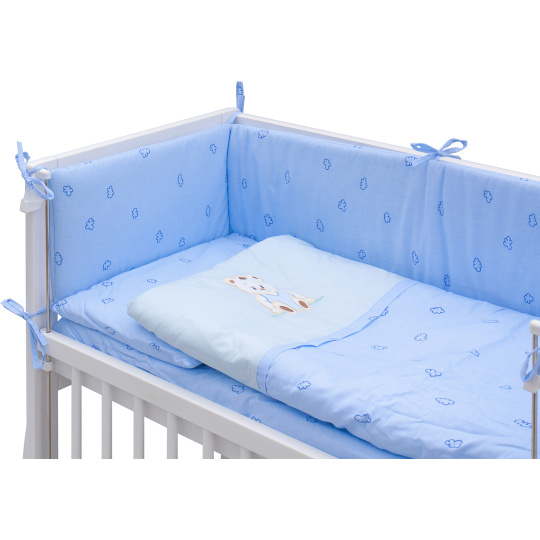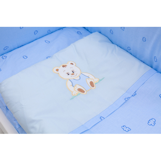 Scarlett Dětská postýlka Baby Scarlett bílá s kompletní výbavou - Méďa modrá - 90 x 41 cm