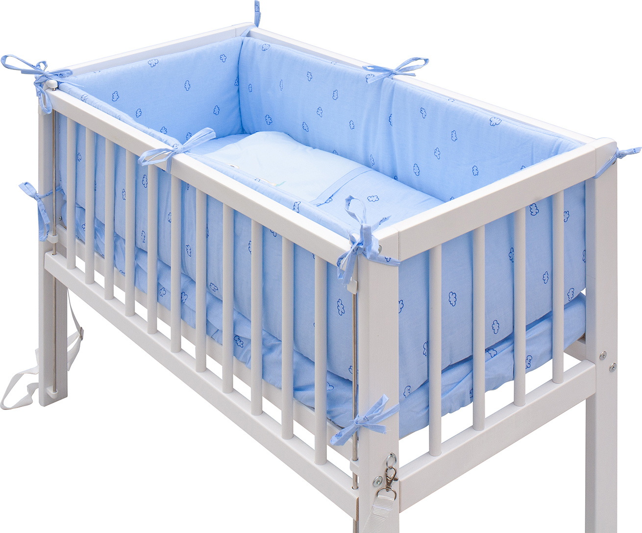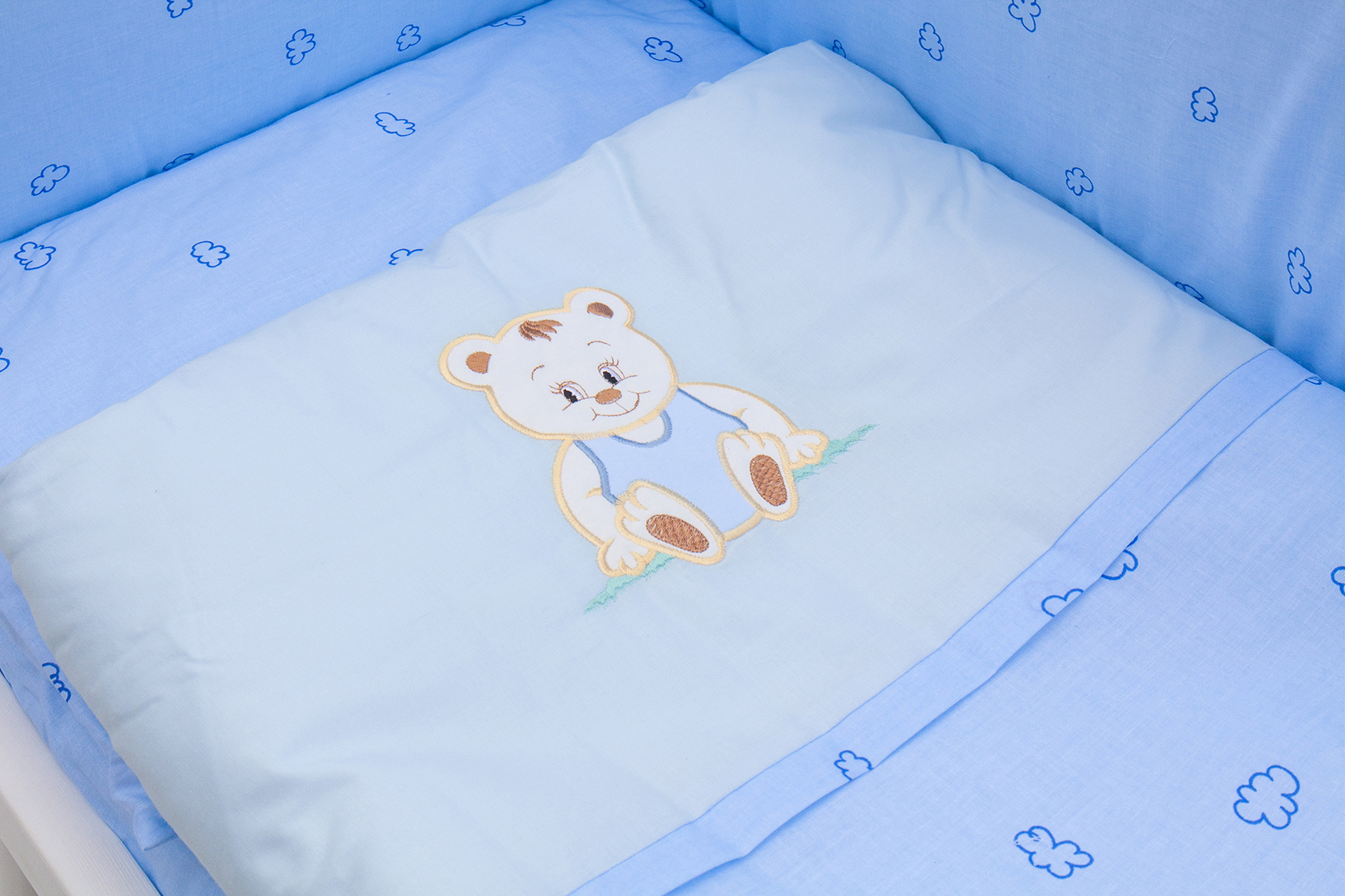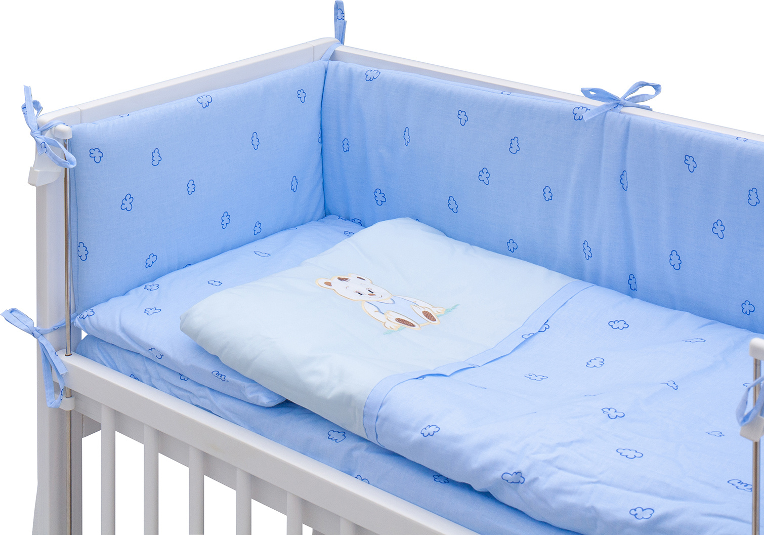 Scarlett Dětská postýlka Baby Scarlett bílá s kompletní výbavou - Méďa modrá - 90 x 41 cm