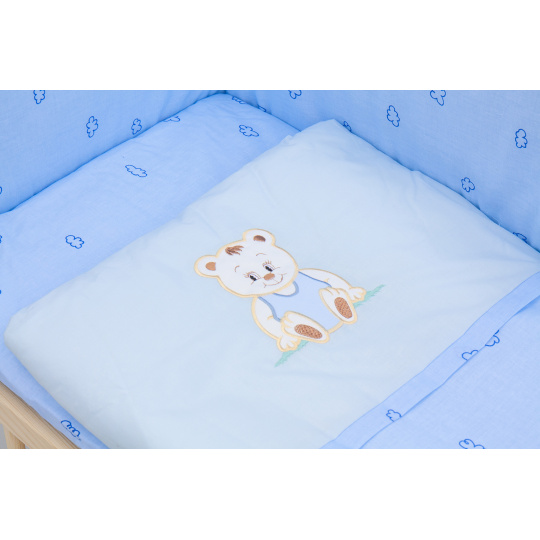 Scarlett Dětská postýlka Baby Scarlett přírodní s kompletní výbavou - Méďa modrá - 90 x 41 cm