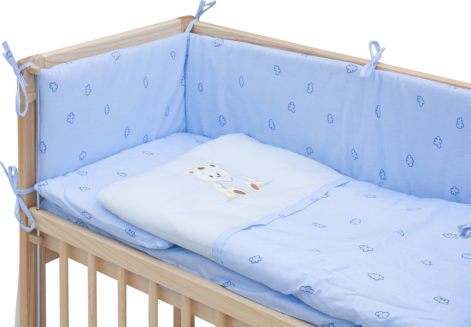Scarlett Dětská postýlka Baby Scarlett přírodní s kompletní výbavou - Méďa modrá - 90 x 41 cm