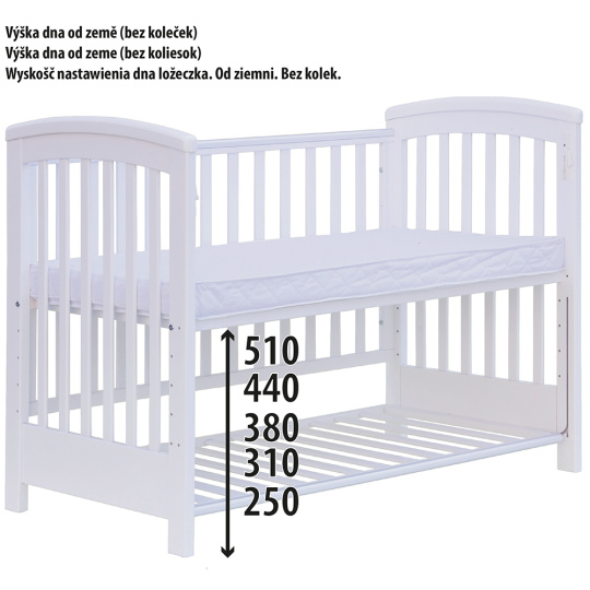 Matrace není součástí standardní výbavy, ale můžete si ji jednoduše vybrat a zakoupit z naší nabídky kvalitních matrací určených přímo pro tuto postýlku.
