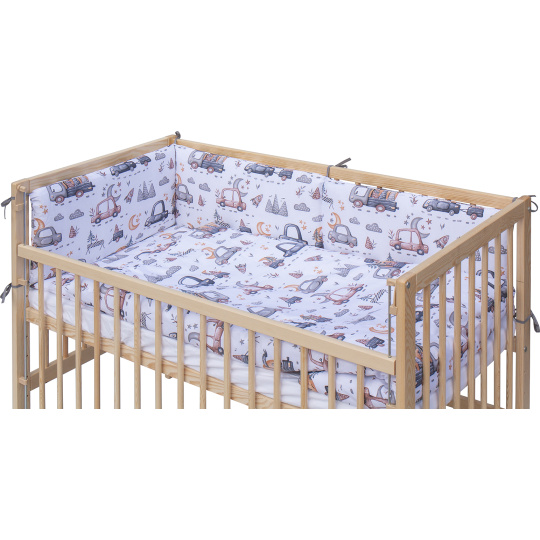 Scarlett Dětská postýlka s kompletní výbavou Scarlett 120 x 60 cm - Autíčka - šedá