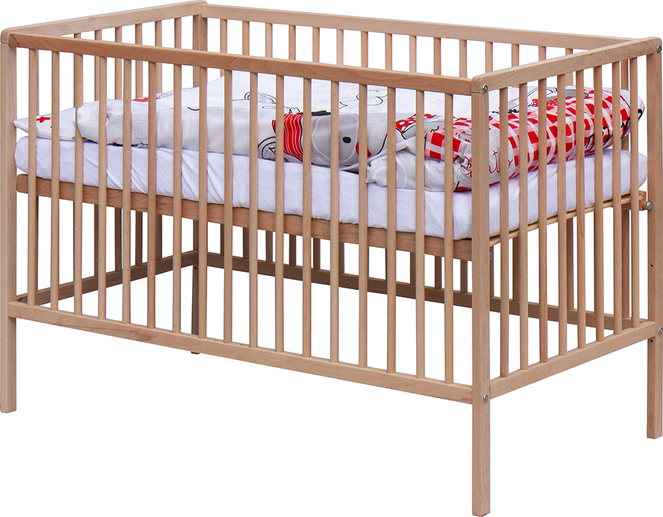 1. Dětská dřevěná postýlka 120 x 60 cm - přírodní, masiv borovice, 3 vyndavací příčky, 3 polohy roštu,
