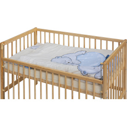 1. Dětská dřevěná postýlka 120 x 60 cm - přírodní, masiv borovice, stahovací bok, 6 poloh roštu