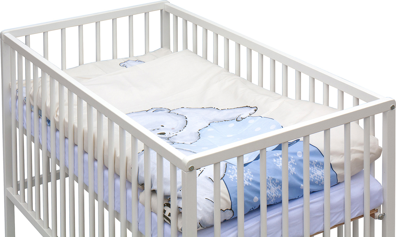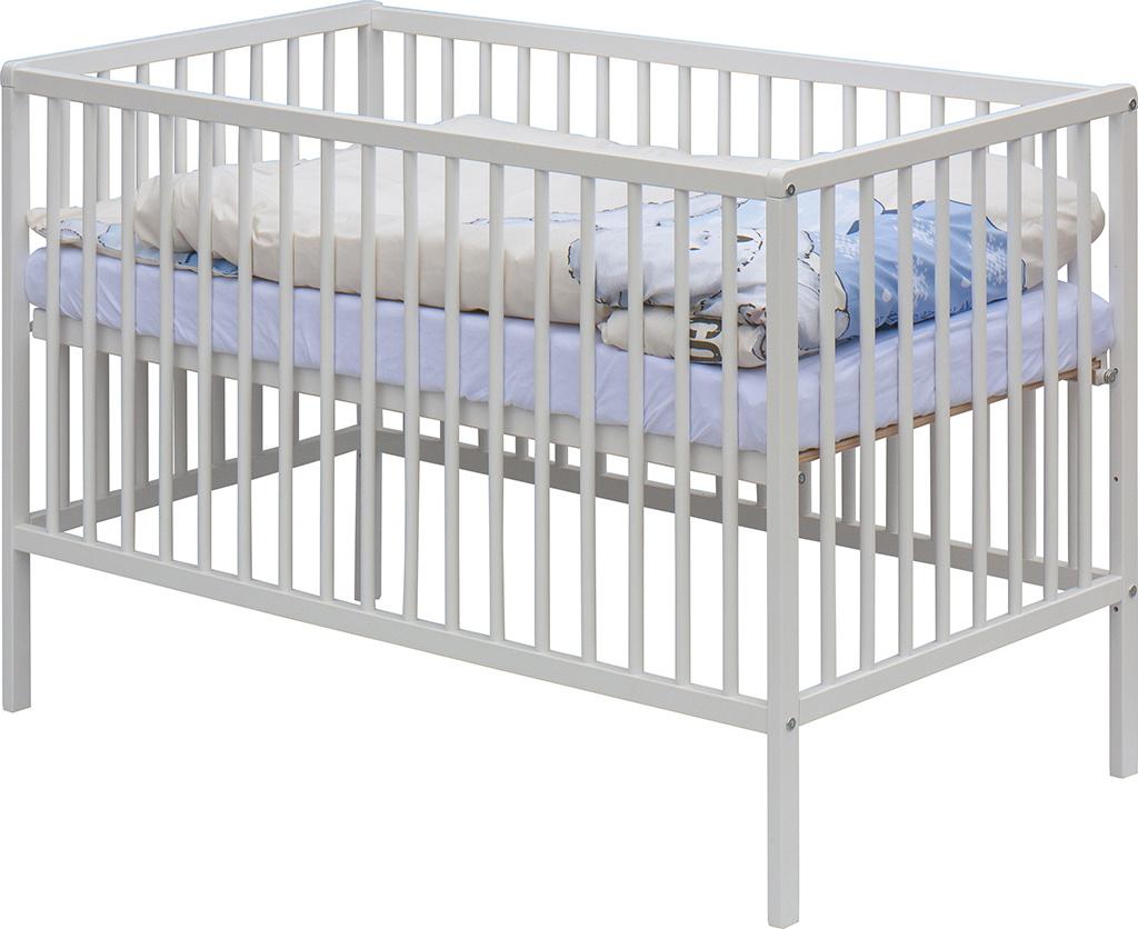 1. Dětská dřevěná postýlka 120x60 cm - bílá, masiv buk, 3 vyndavací příčky, 3 polohy roštu