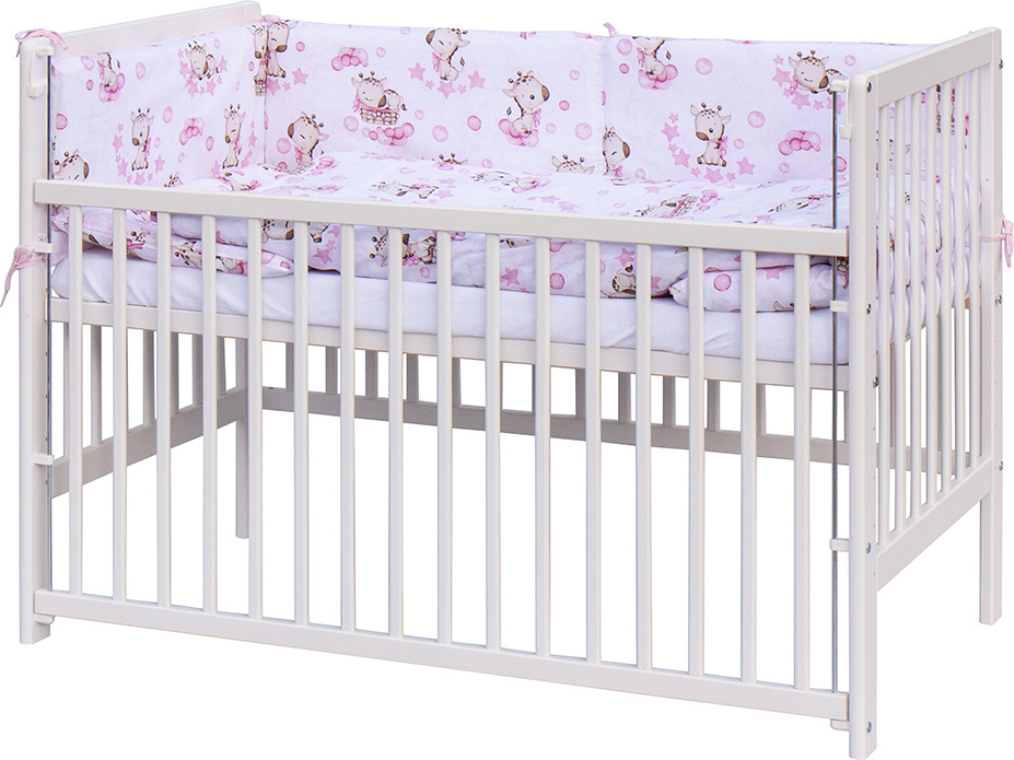 1. Dětská dřevěná postýlka 120 x 60 cm - bílá, masiv borovice, stahovací bok, 6 poloh roštu