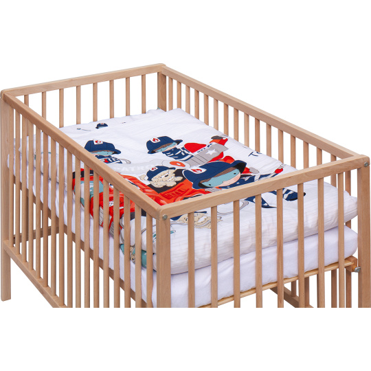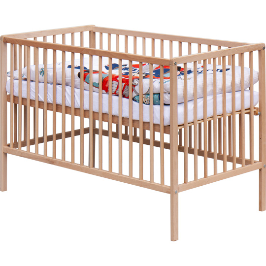 1. Dětská dřevěná postýlka 120 x 60 cm - přírodní, masiv borovice, 3 vyndavací příčky, 3 polohy roštu,